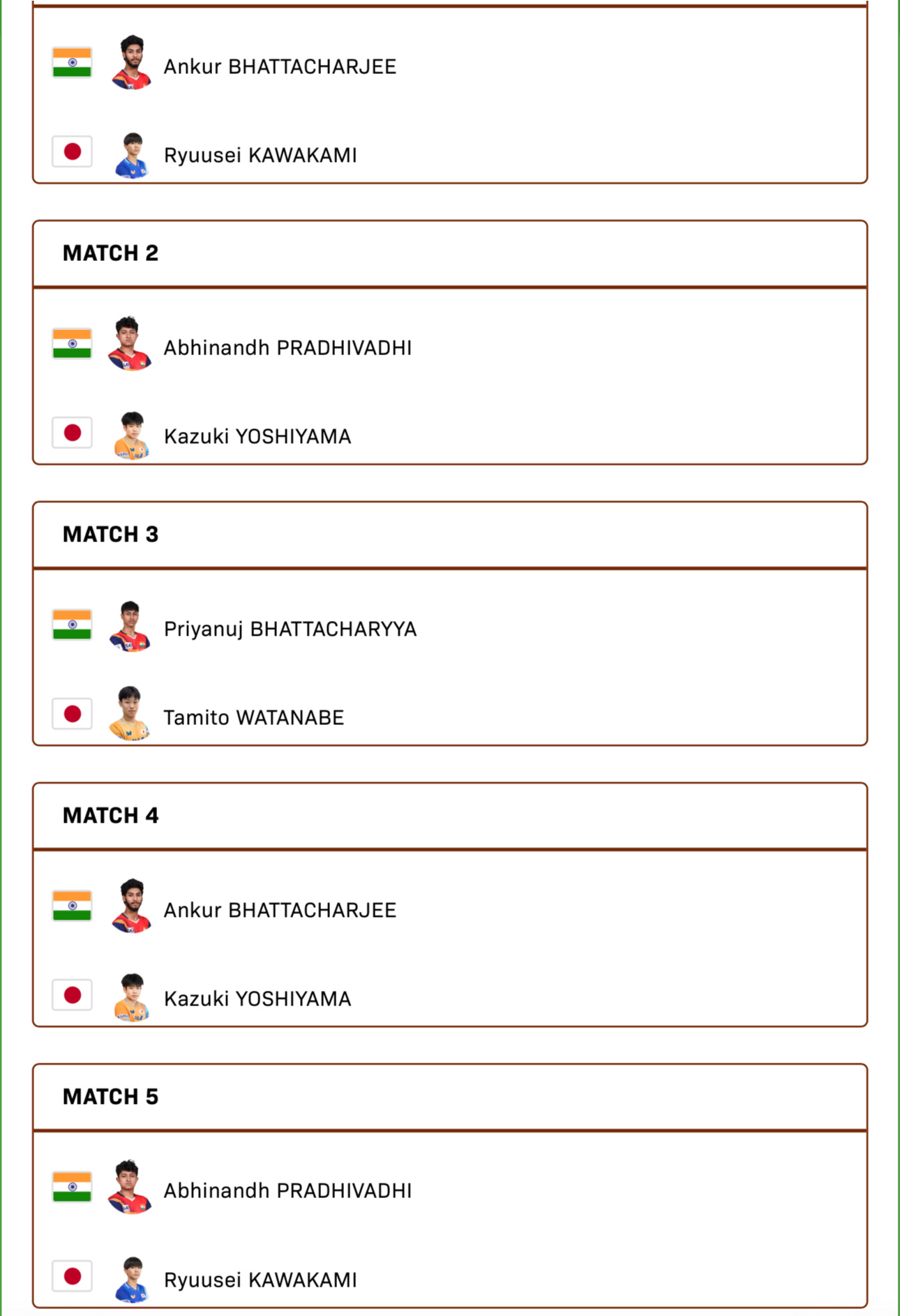 2025世青赛U19男团决赛印度VS日本安库尔VS川上流星普拉迪瓦迪VS吉山僚一巴塔查拉亚VS渡部名人安库尔VS吉山僚一普拉迪瓦迪VS川上流星