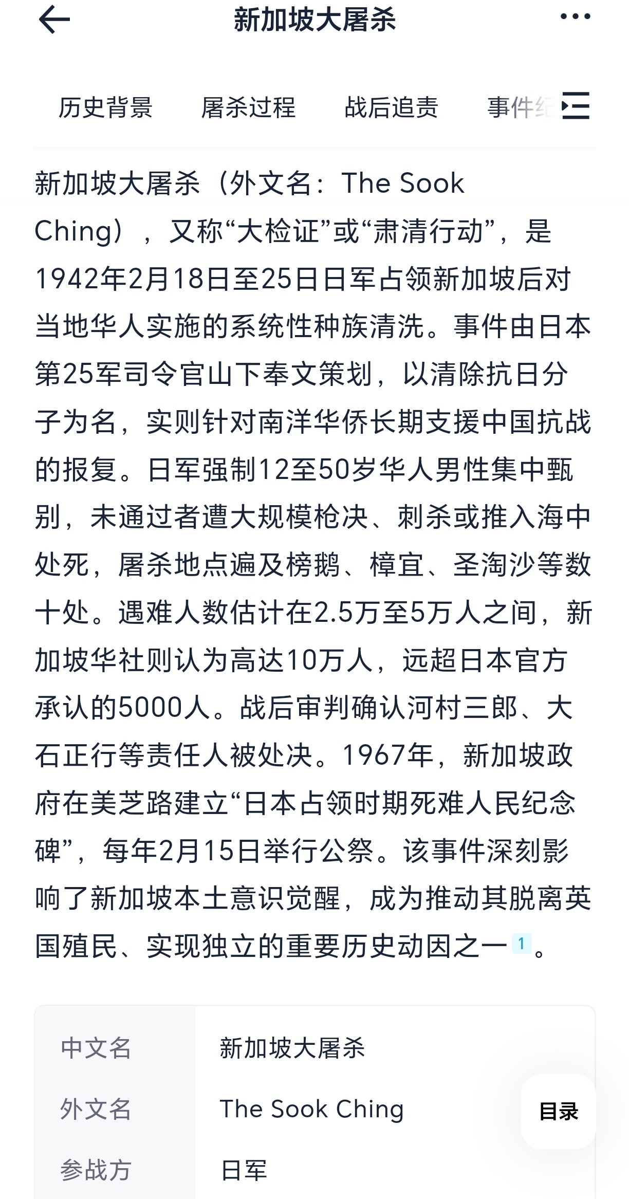 日本在新加坡也是进行过大屠杀的,但估计不少新加坡人忘了。