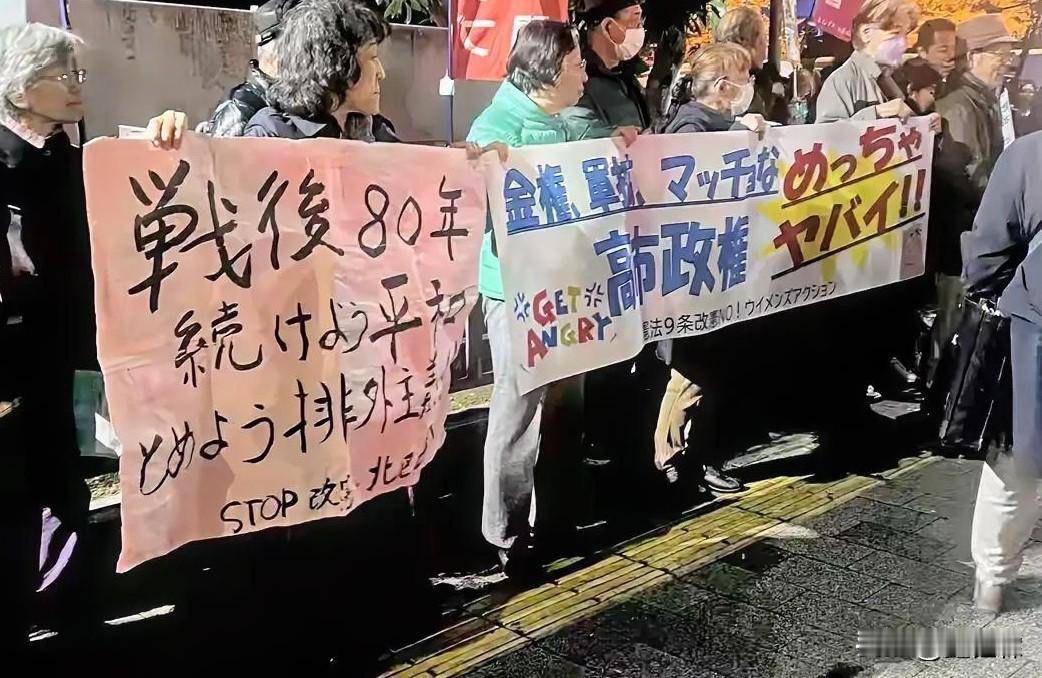 日本的聪明人,就剩下这么几百个了吗? 当地时间25日傍晚,高市早苗首相府邸前面,几百普通民众自发拉着横幅抗议。 要求高市早苗发表的涉台言论向中国道歉,作为掌权者应该维护好战败后这来之不易的和平,而不是破坏秩序,并且要求高市早苗引咎辞职。 可能这些底层民众才是真正的人间清醒,知道如果一旦真的打起来,最受伤的还是他们!