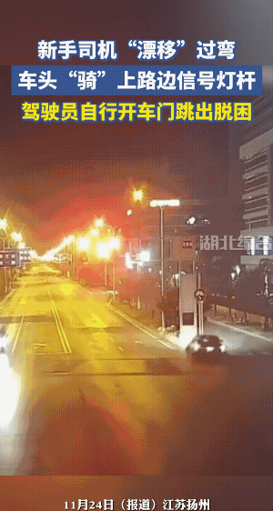 女子开车转弯,十字路漂移,结果车子爬上了电线杆子上。 估计是她转弯不减速,还加了油,离心力大,造成转弯半径过大,才有了这种现象。 女子关没有被吓着,她还是很淡定的打开车门,从车上跳了下来。这个情况,一般人都可能腿都软了。
