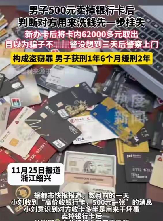 浙江一男子赵某刷手机时看到有人收银行卡,一张给500元。他把银行卡和身份证复印件都交了,拿了500元。后来发现对方收卡时一直问能不能转账、挂失难不难,感觉对方可能在洗钱。 他没报警反而想歪点子,去银行说卡丢了,补了新卡,把里面6万多元全取走了。他以为骗子不敢报警,结果三天后警察就找上门。法院判他犯盗窃罪,判了一年半缓刑两年。 卖卡本身违法,取钱更是盗窃。法官说卡里钱再脏也得等警察处理,自己拿就是犯法。现在很多人都不懂这些,一不小心就踩雷了。