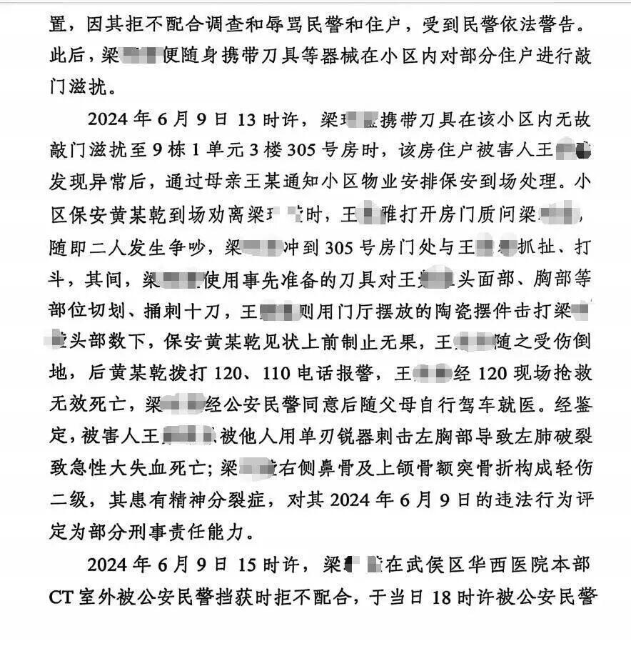 成都这个案子确实让人越想越不对劲,一个27岁的姑娘在自己家门口遇害,凶手的种种情况都透着蹊跷。 首先就是这个精神分裂症的诊断。梁某某在行凶前压根没有就医记录,一出事就被诊断出有精神病,这时间点也太巧了。对受害者的家人来说,这根本没法接受——到底是真有病才杀人,还是杀了人再拿病当挡箭牌?这里头的差别可太大了,直接关系到最后的判决。 更让人想不通的是,这个梁某某早就是小区的“老熟人”了。从2023年开始,她就多次来小区闹事,挨家挨户敲门骚扰,跟业主吵架,甚至报警后还敢辱骂警察。可这么多次折腾下来,她每次都是被警告一下就放了,压根没受到实质性的处理。要是早点能有效干预,悲剧是不是就能避免? 小区物业和保安的表现也让人心寒。凶手明明已经多次来闹事,物业却像没事人一样,连个基本的防范措施都没有。最讽刺的是,案发时保安其实已经到场了,结果凶案还是发生了。这应急能力简直形同虚设。 再说行凶过程。梁某某是带着刀进小区的,这说明她根本不是临时起意,而是有备而来。哪怕不能断定是蓄谋已久,但至少证明她当时就是带着攻击性去的,绝不是一时冲动。 最离谱的是案发后的处理。警方居然让凶手和家人自己开车去医院?这可是刑事案啊,就算当时要先救人,按常规也该在警方控制下就医吧?这么随便放行,万一中途跑了或者毁灭证据怎么办? 整件事看下来,感觉每个环节都透着疏漏。要是之前闹事时处理得坚决点,要是物业多上点心,要是警方办案更规范点……也许这个年轻的姑娘就不会白白送命。希望这事能查个水落石出,给受害者家人一个交代。