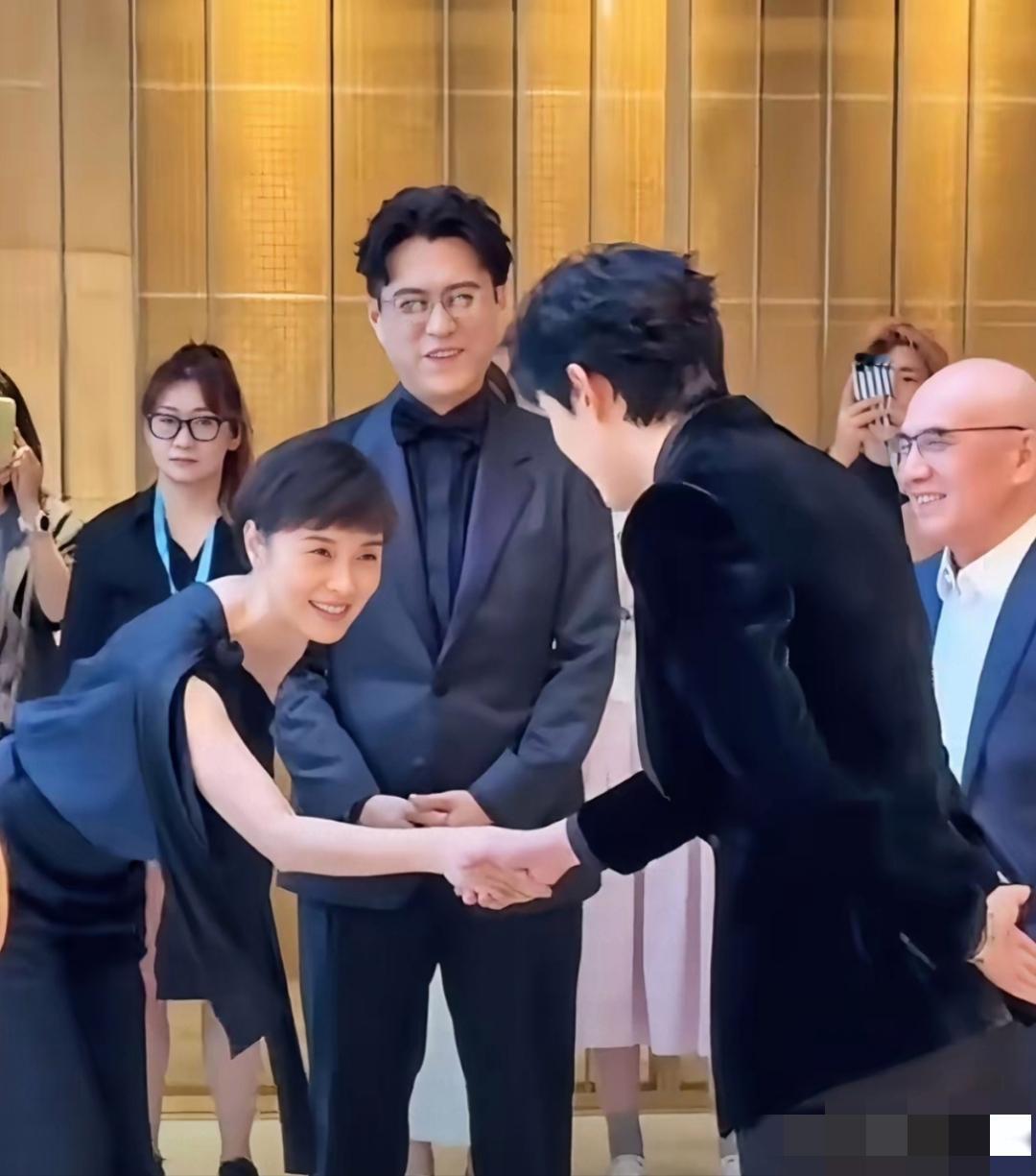 画面中的吴越衣着时尚,短发利落,皓肤如玉,气质清甜,笑靥如花,可是面对晚辈吴磊,没必要这么谦躬这么低姿态吧,你觉得呢?
