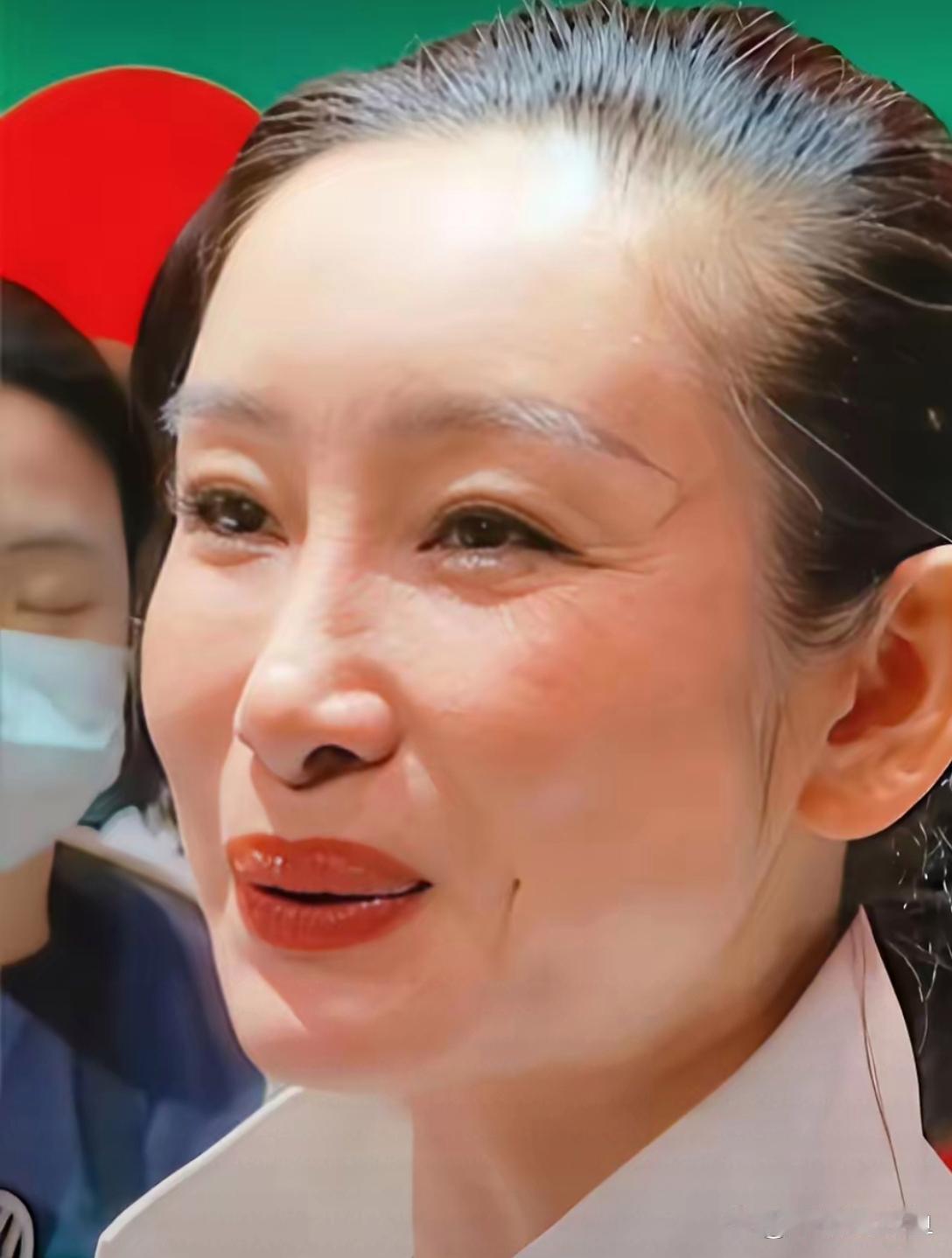 秦海璐高清怼脸拍:发稀眉淡,唇红齿白,睫毛长翘,天庭饱满,地阁方圆,眼角皱纹粗粝,银丝醒目,稍显老态,笑起来居然几无唇珠与人中,你看是这样吗?