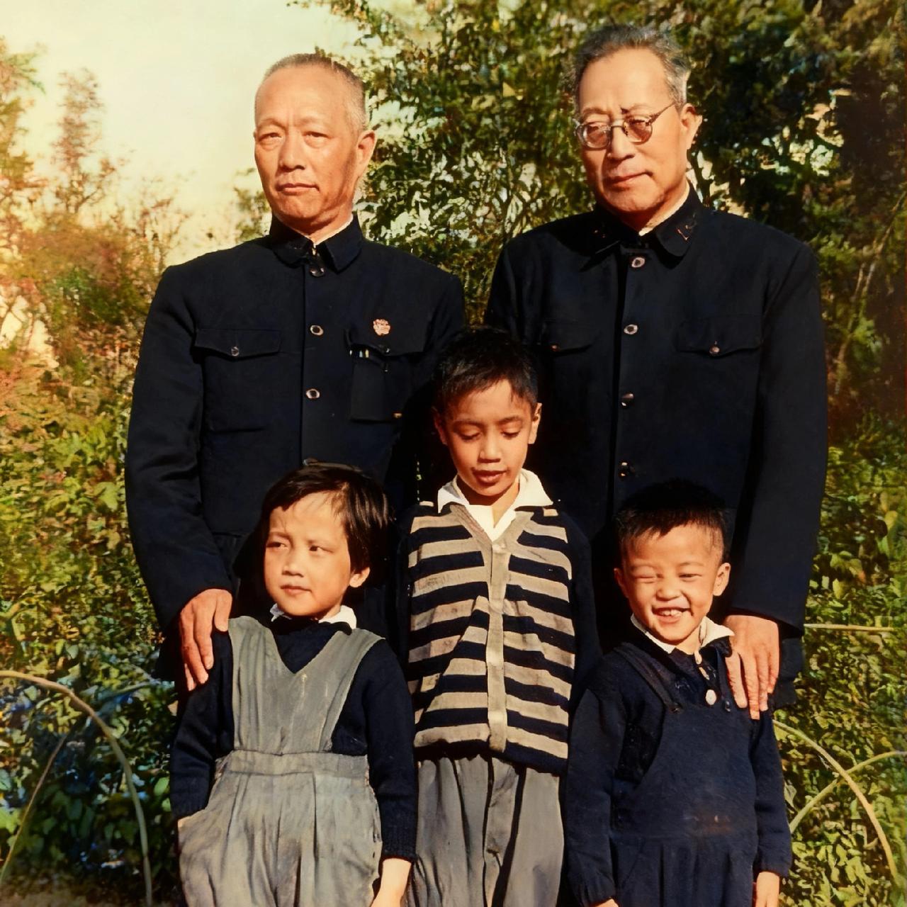 这是吴石将军的两位挚友——何遂与缪秋杰的一张罕见合影。照片里,二人并肩伫立,皆身着中山装,神情沉稳。 身旁依偎的几个孩童,分别是何敏、何仲山与何迪。更值得一提的是,他们不仅是志趣相投的挚友,更是亲上加亲的亲家——何遂的儿子何康,娶了缪秋杰的女儿缪希霞。 吴石、何遂和缪秋杰仨人,那可是实打实的生死挚友,全靠那份滚烫又坚定的爱国初心拴着,情谊深到旁人难及,这份因信念结缘的交情,远比普通朋友厚重太多。 吴石跟何遂本就是福建老乡,早年赶上护法运动那会儿碰着了,一起历经风雨、并肩奔走,慢慢处出了过命的交情,彼此信任得能把后辈交给对方,这份同乡加战友的情谊,往后多少年都没淡过。 何遂自己没入任何党派,可家里几个儿女全是我党的地下党员,凑一块儿成了实打实的“兄弟党小组”,一家子满是热血正气,这份家国担当真挺让人敬佩。 吴石后来能扎根隐蔽战线,多半是受了何遂的影响,一步步坚定了为理想奋进的决心,这份引路之情,也成了俩人情谊里格外珍贵的一笔。 而缪秋杰是民国时期响当当的盐务专家,本事过硬、口碑极好,早年就跟何遂成了交心挚友,后来他的女儿缪希霞嫁了何遂的儿子何康,两家就此结了姻亲,亲上加亲,来往更密,日子里满是温情。 吴石和缪秋杰私下也是要好的朋友,早前还凑一块儿共过事,私下里也常聊家常谈抱负,交情格外实在。 最有意思也最让人感慨的是,这三位老友离世后,先后都葬在了福田公墓,墓碑紧紧挨在一块儿,即便走了也没分开,仿佛还能像生前那样相伴,这份跨越生死的情谊,着实让人动容。