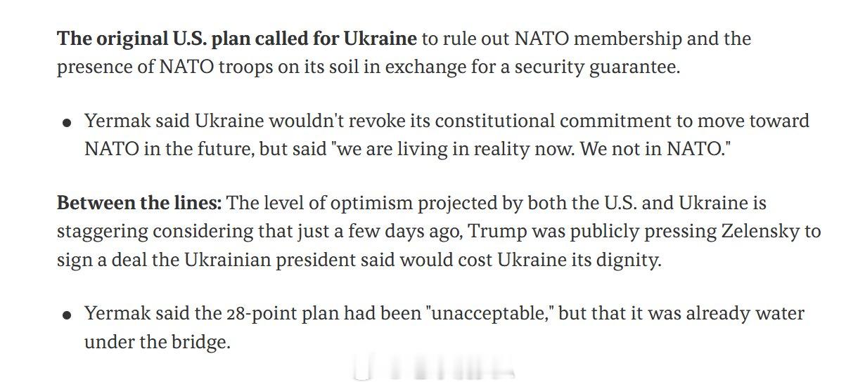 我的理解对吗?泽圣只是让美国人去掉了所有乌克兰和欧洲不同意的内容:---不得拥有北约成员国身份、领土割让、军队规模限制等等,也就是所有俄罗斯追求的核心目标,而现在泽圣要去白宫“签署”自己的“愿望清单”。从目前西方媒体的反应看,看起来懂王不得不做出一些重大让步,既然乌克兰人满意了,他们就可以签署和平协议,最终结束美乌战争。---什么俄乌战争,那是另一个空间的事。