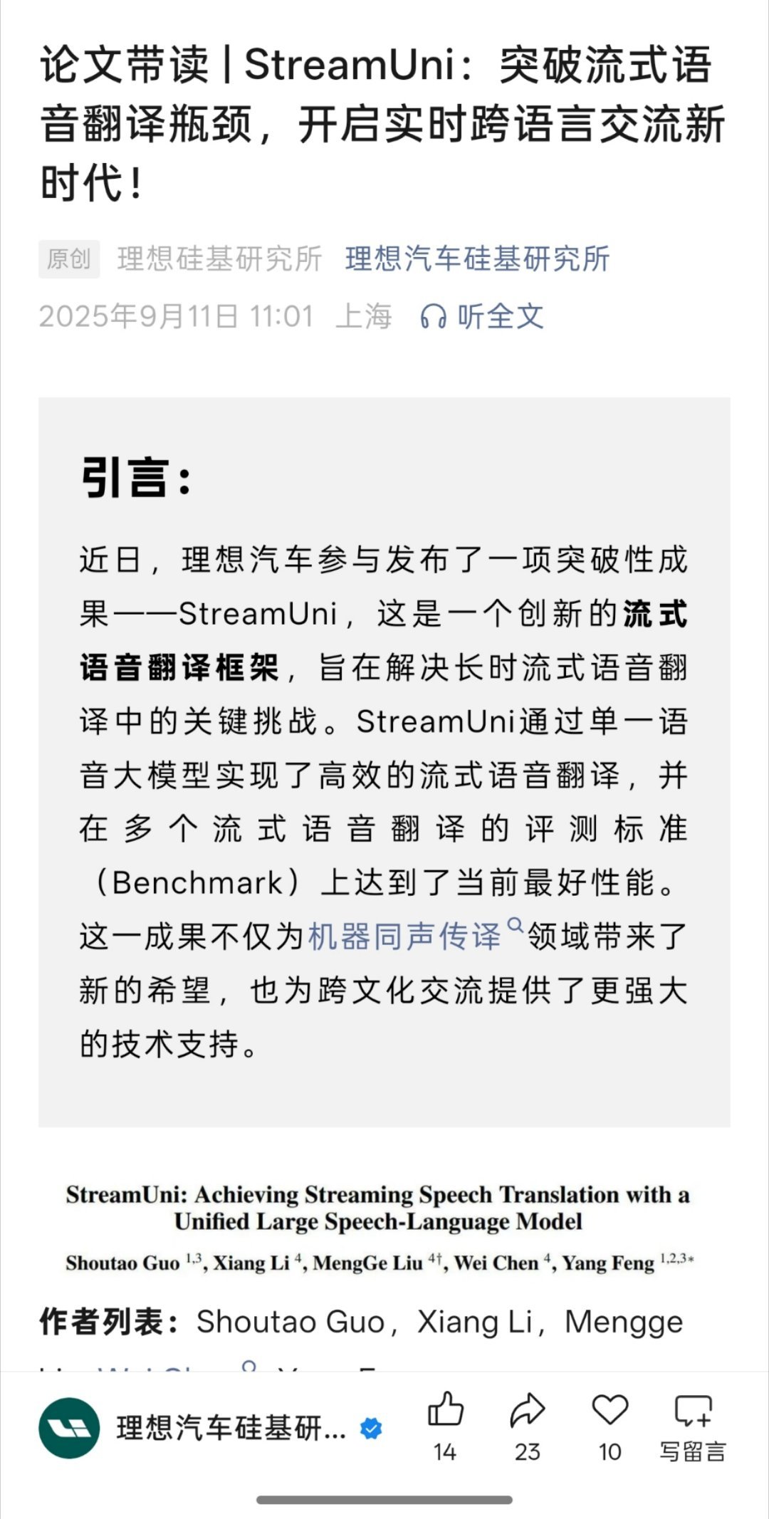 理想即将推出的智能眼镜和我刚看到的这篇文章一结合,好像有点意思啊!你们最期待智能眼镜具备什么能力或者功能?理想第一次做消费电子硬件,不敢报太高的期待!尤其是硬件层面!说一下我的期待:1.翻译,如下图所示!2.导航语音3.理想同学咋能优雅的使用?4.识别万物5.续航,拍摄,音质等都不敢有太高的期待!理想会自研智能眼镜的操作系统吗?