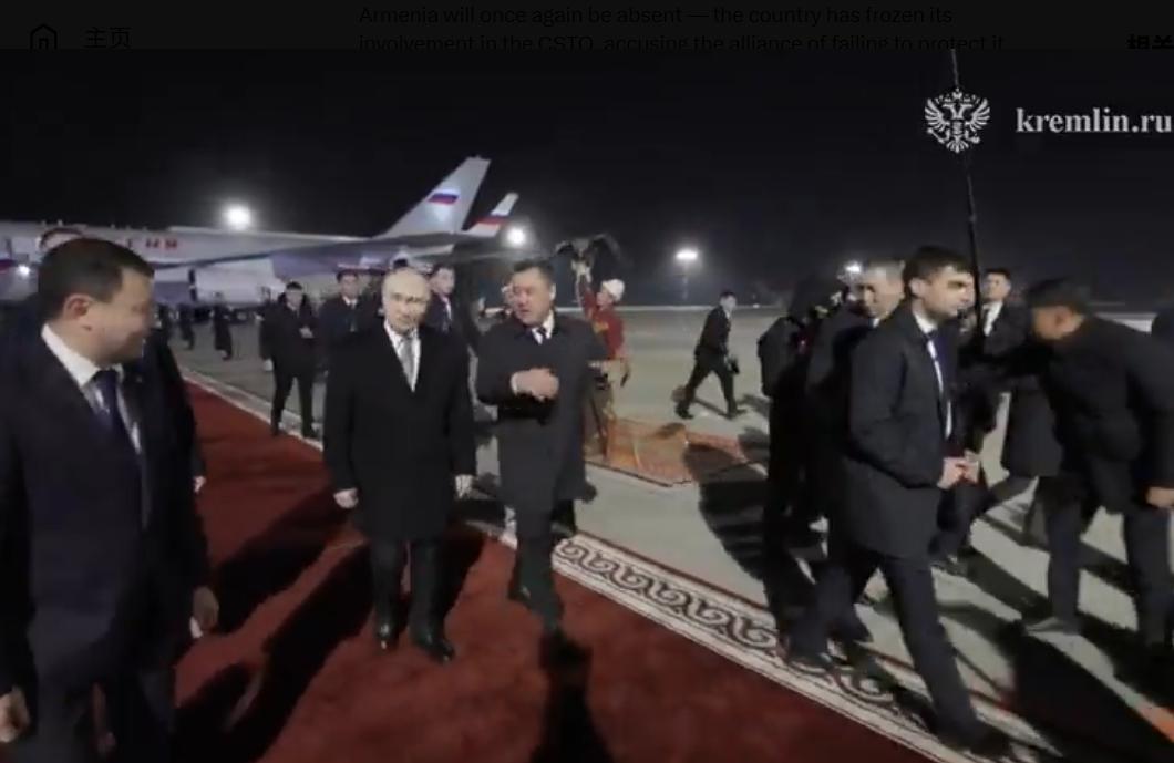 【普京拖着疲惫的身体来到吉尔吉斯斯坦——在那里,人们为他唱歌、跳舞,还演奏了《卡琳卡》。】这位领导人飞往比什凯克参加集体安全条约组织(CSTO)峰会——CSTO是由几个后苏联国家组成的军事联盟。会议将于周四举行,白俄罗斯、哈萨克斯坦、塔吉克斯坦、俄罗斯和吉尔吉斯斯坦将参加。亚美尼亚将再次缺席——该国已冻结其在集体安全条约组织(CSTO)的活动,并指责该联盟未能保护其免受阿塞拜疆的侵略❌