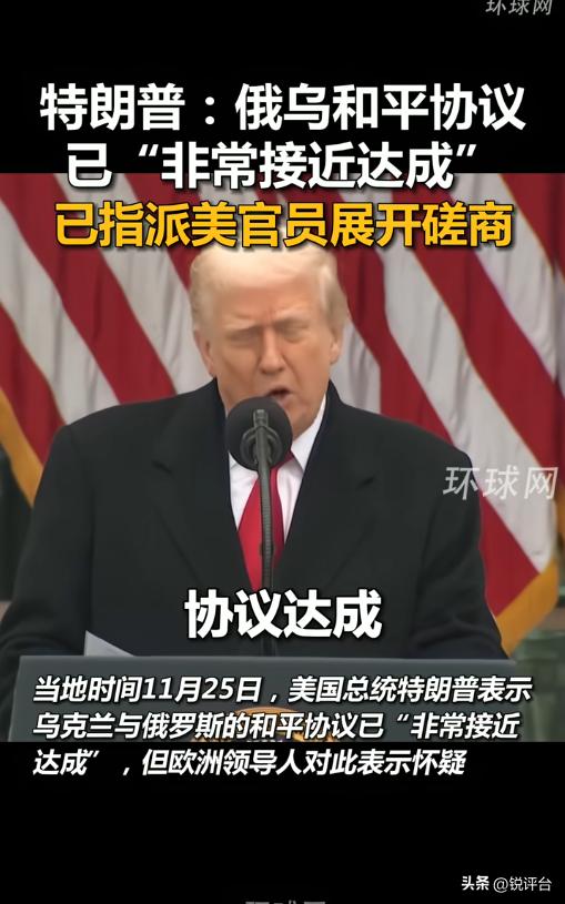 特朗普:俄乌和平协议已“非常接近达成”,27日将迎关键节点 🎙️ 国际焦点突发!当地时间11月25日,美国总统特朗普公开表态,称牵动全球的俄乌和平协议已“非常接近达成”,这一消息瞬间引爆国际舆论场。与此同时,白宫也同步释放信号,确认协议仅剩“少量微妙细节”待敲定,而11月27日这个被特朗普多次强调的“截止日期”,正成为决定和平走向的关键分水岭。 这场和平博弈的核心,围绕特朗普政府提出的“28点和平计划”展开。据央视新闻披露,美乌代表已于23日在瑞士日内瓦就该计划举行高层磋商,经过多轮拉锯,原本的28点内容已优化缩减至19点,争议最大的条款被留待两国总统最终敲定。更值得关注的是,乌克兰国家安全与国防委员会秘书乌梅罗夫已证实,乌方已“原则同意”美方提出的核心条款,这为协议落地扫清了关键障碍。 🔍 从“最后通牒”到“接近达成”,特朗普的态度转变背后是多方博弈的结果。此前,他曾强硬喊话泽连斯基“必须接受计划,否则继续打”,并将27日定为接受截止日期,理由是“冬季临近,流血冲突不能再持续”。但面对乌方和欧洲的反馈,特朗普近期松口表示“这不是最终方案”,强调“和平早就该实现了”。这种弹性态度,被外界解读为推动协议落地的务实调整。 泽连斯基政府正处于两难抉择中。一边是特朗普政府的明确施压,美国副总统万斯已与泽连斯基进行近一小时的电话沟通;另一边是乌克兰面临的现实困境——泽连斯基在视频讲话中坦言,乌方正承受“前所未有的压力”,要么接受这份“困难的计划”,要么直面“最严酷的冬季与危险”。不过他也透露,乌方已准备好“替代选项”,拟于27日与特朗普当面磋商。有趣的是,在特朗普抱怨乌方“毫无感激之情”后,泽连斯基迅速在社交平台发文致谢,称“美国的帮助一直在挽救乌克兰人的生命”,态度耐人寻味。 💣 俄方的态度同样关键。普京已通过官方渠道表示,特朗普的“28点计划”“可作为最终和平解决方案的基础”,并强调俄方“已准备好实质性谈判”。但他也直言,美方尚未就方案细节与俄方深入沟通,且乌方此前曾持反对态度。普京同时释放强硬信号:若乌方拒绝谈判,俄军将在关键前线“重复库皮扬斯克的胜利”。 欧洲阵营则呈现“冰火两重天”。欧盟、英、法、德等国领导人发表联合声明,对美国的努力表示欢迎,但强调计划“需进一步完善”,并坚守“国际边界不应被武力改变”的底线。而欧洲媒体则批评更直接,法国《费加罗报》直言该计划是“美国制订的乌克兰投降计划”,担忧美国将欧洲利益置于不顾。 目前,特朗普已指派特使分别赴莫斯科和基辅推进磋商,自己则将与核心团队坐镇白宫听取进展。27日的美乌总统会面,将成为和平协议能否“临门一脚”的关键。这场持续数年的冲突是否能迎来转折?全球都在屏息等待答案。 特朗普谈俄乌局势 俄乌和平曙光 美乌日内瓦会谈