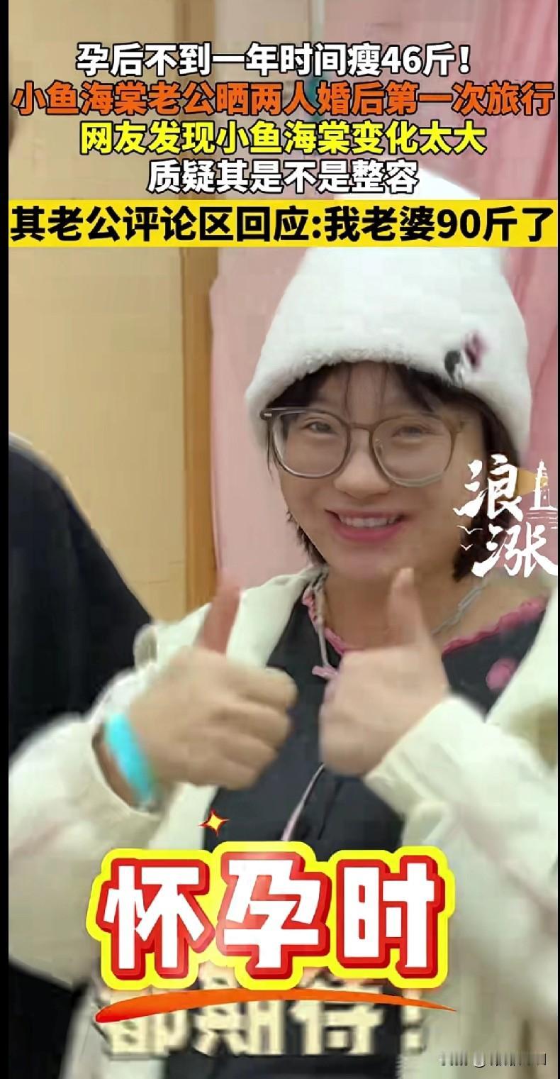 小鱼海棠这波“产后逆袭”,直接杀疯了! 谁看了不说一句“姐姐好牛”啊! 怀孕时圆乎乎的小鱼海棠,产后不到一年直接瘦了46斤,现在重回90斤!老公晒出俩人婚后首旅的照片,网友直接炸了:“这变化也太大了,是不是偷偷整容了?” 结果她老公直接杀进评论区:“我老婆就是90斤了!” 一句话怼得质疑声全哑火,这护妻力直接拉满! 咱就是说,产后瘦身哪有什么“魔法”?无非是熬了无数个夜、攒了无数次坚持,再加上身边有人撑腰的底气罢了。这又美又被爱的状态,谁看了不羡慕啊!