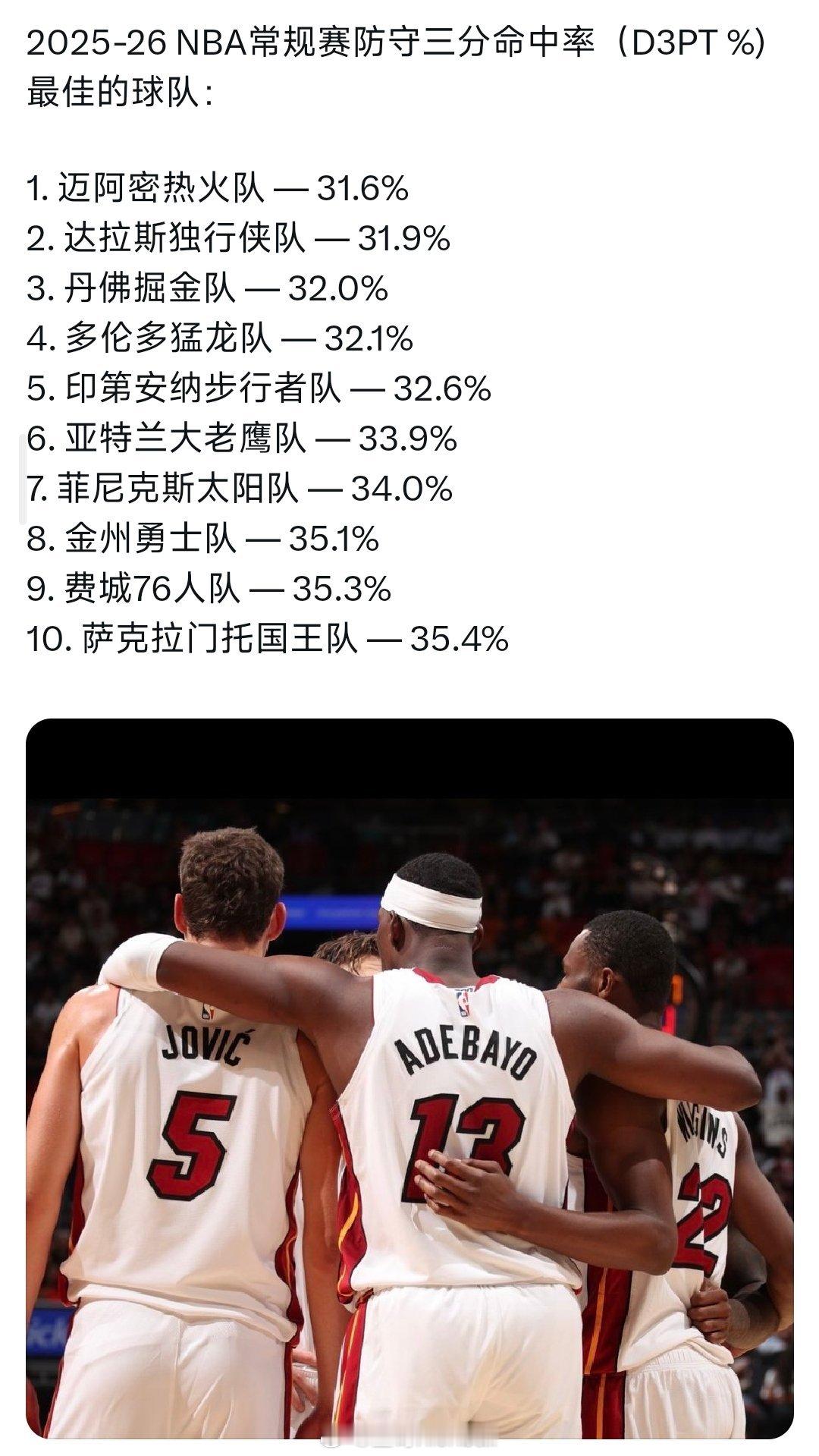 这赛季热火三分球防守效率联盟第一,打快防住对手三分,这点非常重要