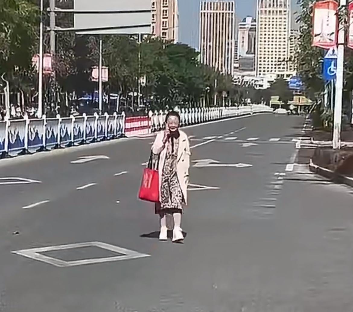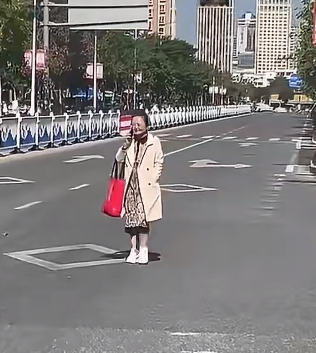 今天开车遇到马路中间散步的大妈,胜似闲庭信步。看这个老仙女姿势优雅,拎着红袋子,右手在打电话,穿着打扮像小姑娘,马路是自家客厅,来回踱着小碎步,在没有斑马线的十字路口,丝毫意识不到有任何风险。不知道这些人的脑回路,真不把这些高速飞驰的车当回事。路遇老太 广场上老阿姨