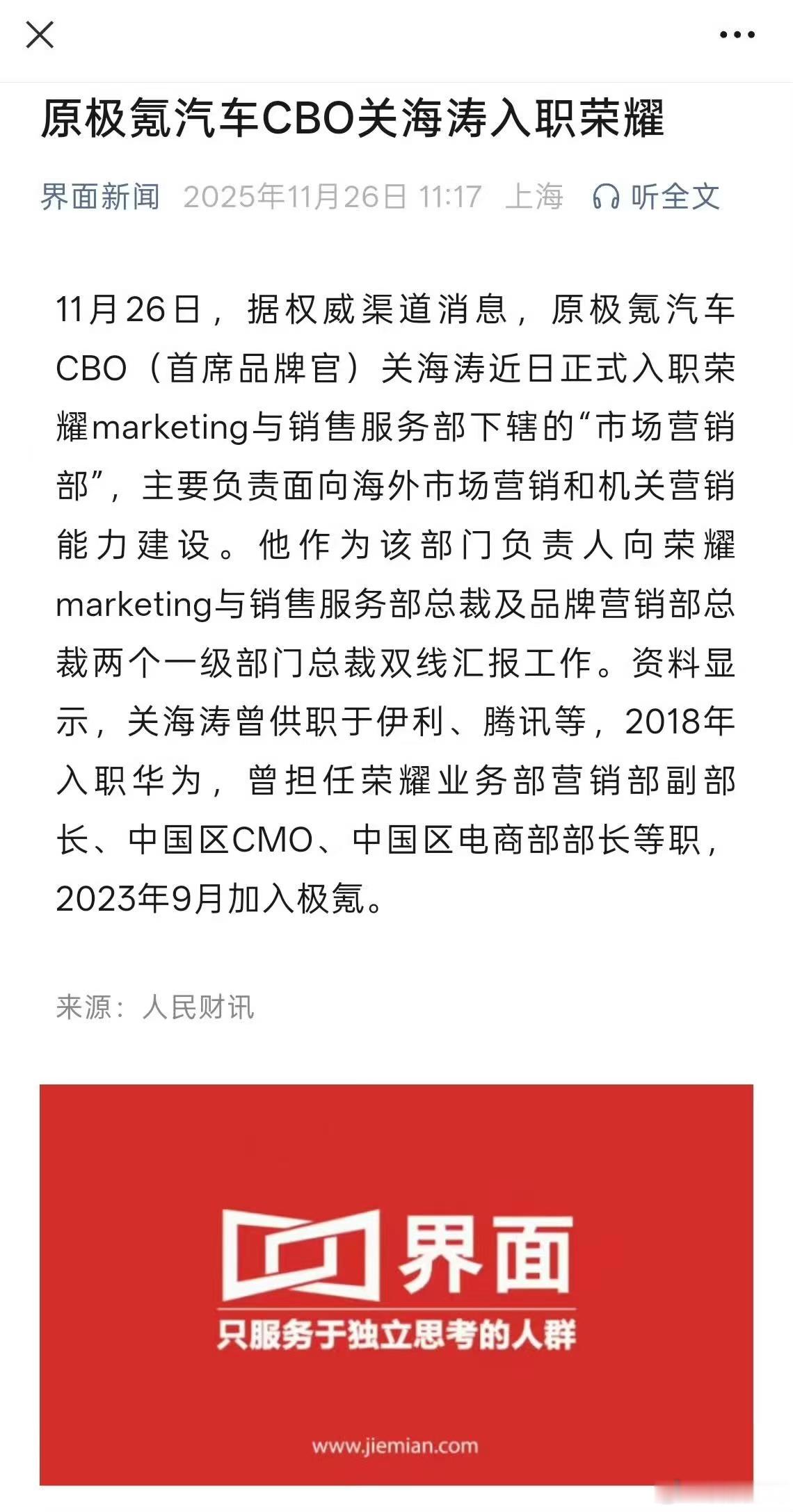 赵长江空降智界汽车 真的去智界了?给他渠道,他应该能让智界起飞...