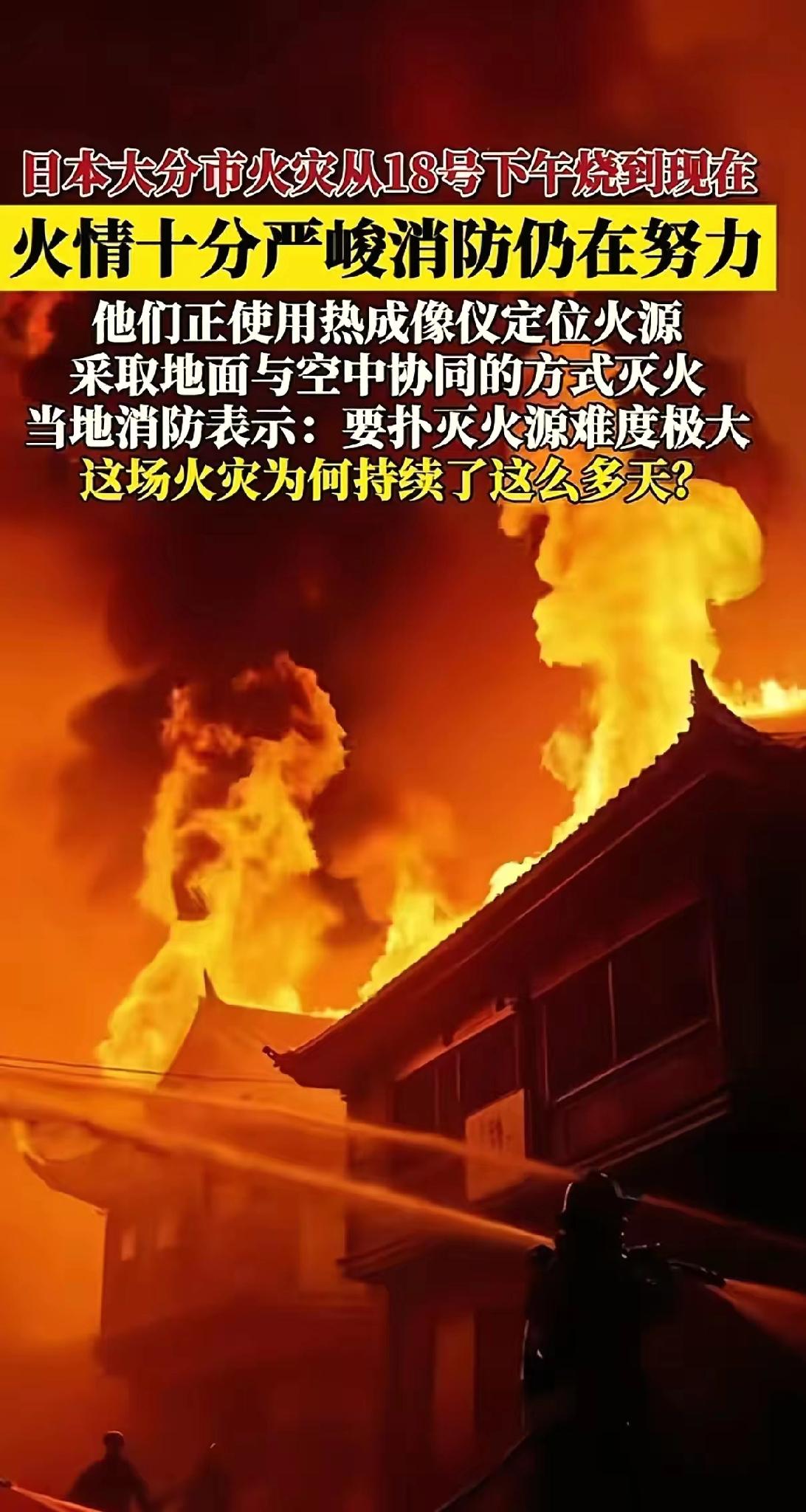 日本这是被大火“连环警告”了吧! 大分市大火烧了7天没停, 170多栋建筑烧成“轰炸后废墟”,刚缓过神,坂东市塑料厂又火光冲天,800-1000℃高温让消防员都难靠近。 一次是意外,两次就是警钟了。要是还不重视,后续真说不准还会出啥乱子。你觉得日本该先整改哪些安全隐患? 明眼人都懂,这可能就是惩罚![大笑][大笑][大笑] 你们说是不是?
