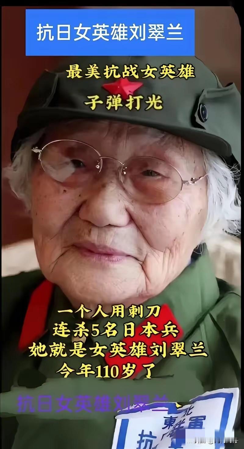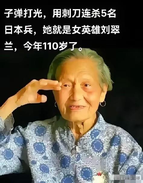 画面中的老奶奶,是抗日女英雄,关于她的事迹,虽然在网上查看了很多资料,可以确定的是,名字都叫刘翠兰,籍贯是河北涞水人,出生于1914年,据说现在还健在,已经111岁了,但是不敢断定画面中的这三个人,是不是同一个人。这个老奶奶非常的不简单,在子弹打光援军未到的情况下,一个人用刺刀刺死五个日本鬼子,是一个传奇的抗日女英雄,向老奶奶致敬,为老奶奶点赞!