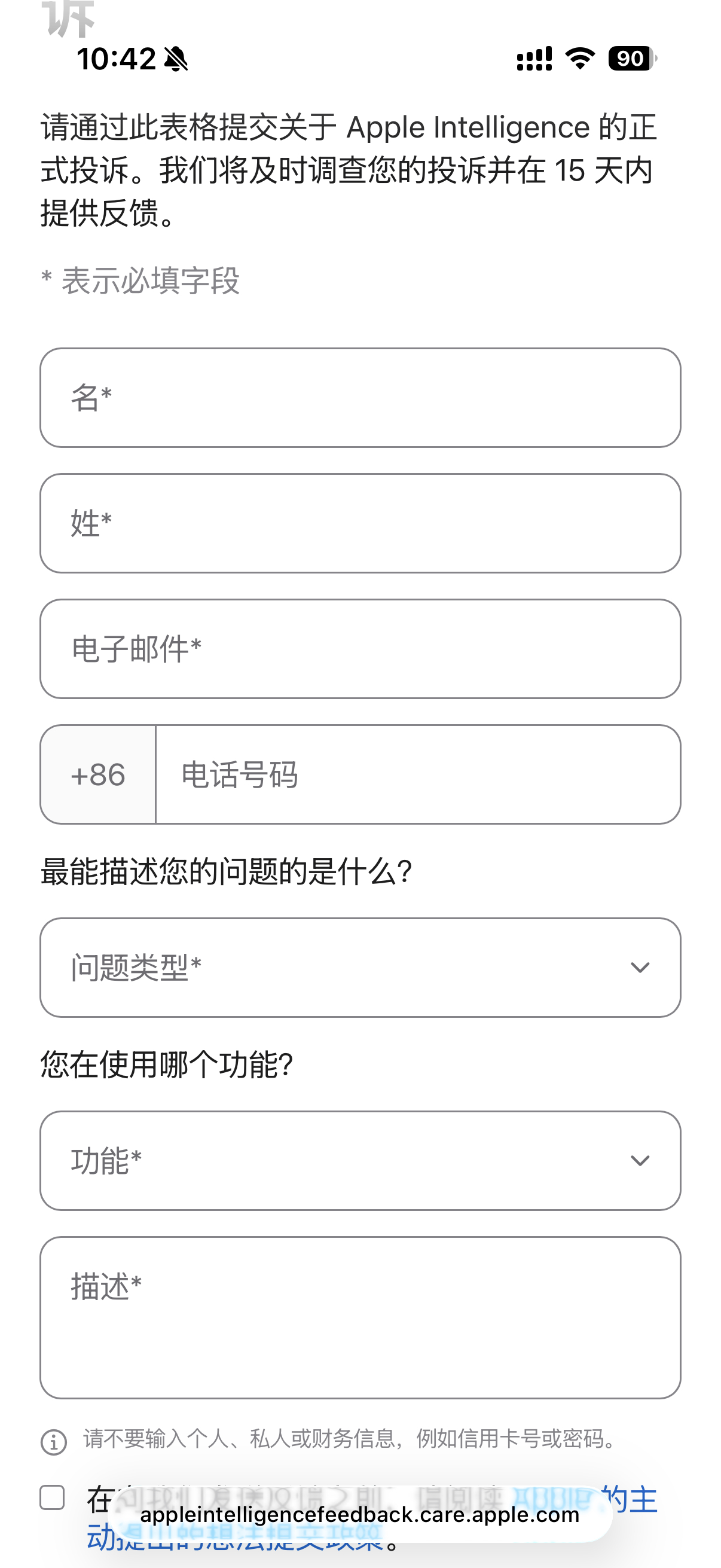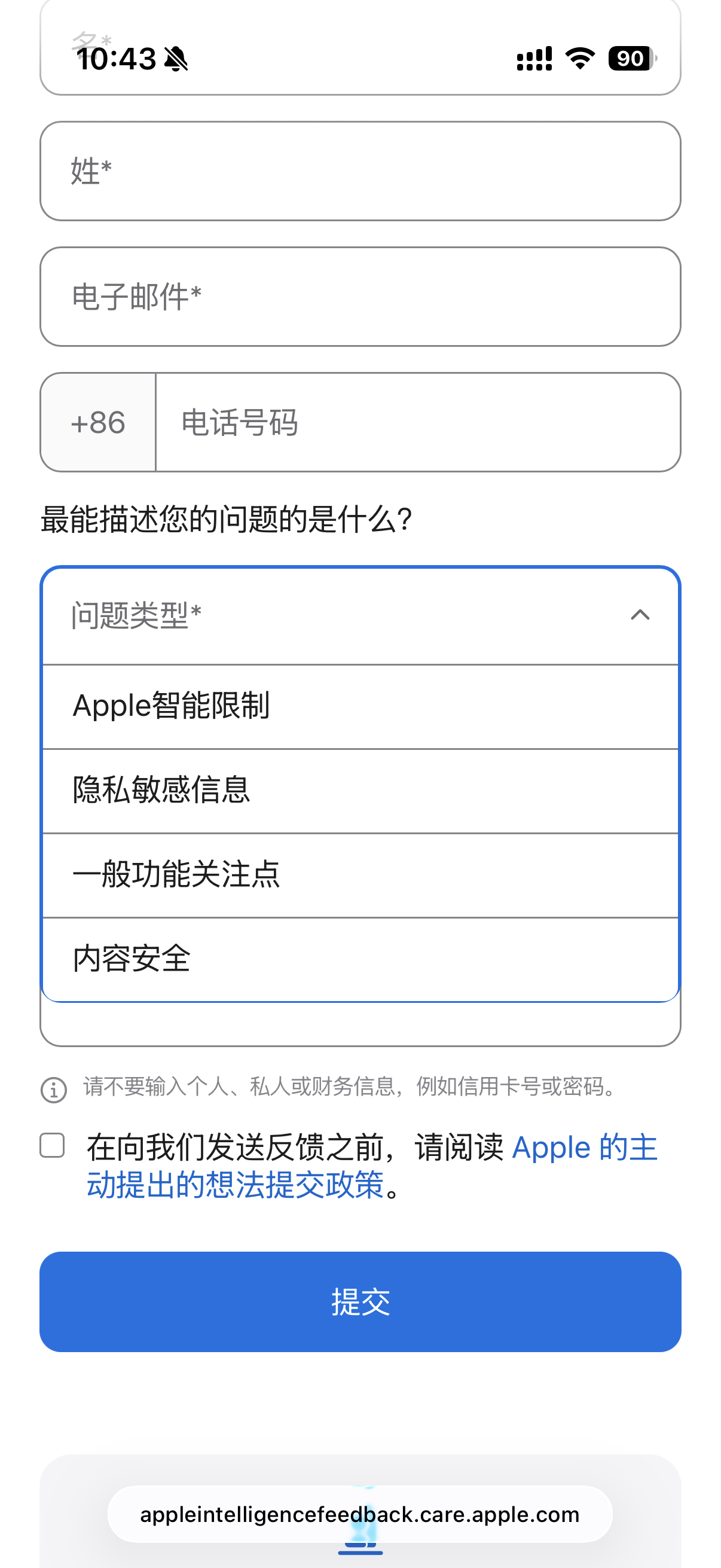苹果官网上线了一份 Apple Intelligence 的反馈表单而且手机号那栏必须填写中国大陆的 +86,也就是说这是给大陆版本 Apple Intelligence 收集反馈用的更巧的是,这个页面的域名是阿里巴巴在运营,IP 也落在上海,而国行版的 Apple Intelligence 大语言模型就是由阿里的通义千问提供那是不是意味着,国行版的 Apple Intelligence 终于要来了?表单里用户可以反馈的内容包括 Apple 智能的限制、隐私敏感信息、一般功能问题、内容安全四大类。期待国行 Apple Intelligence 年前能上线吧