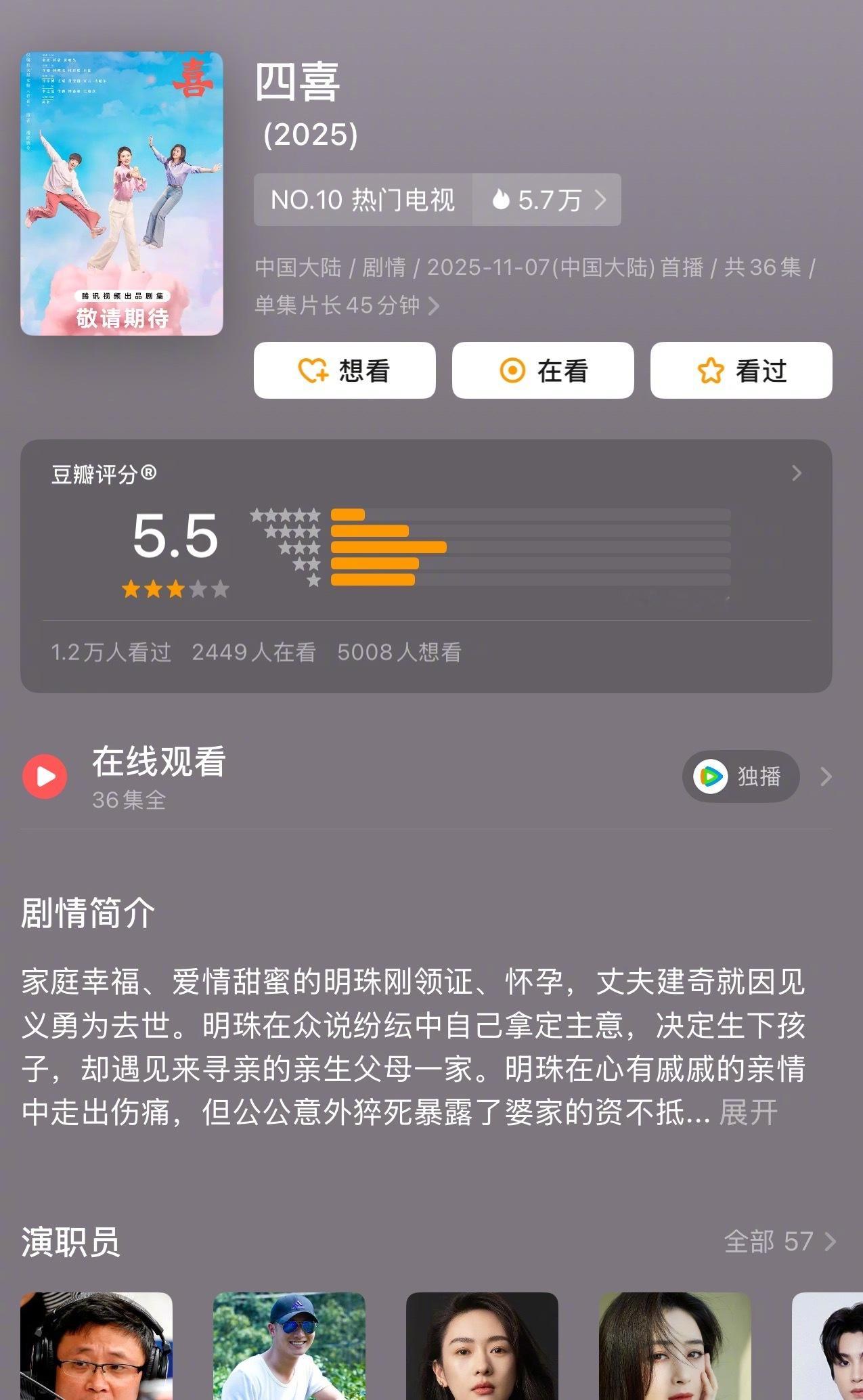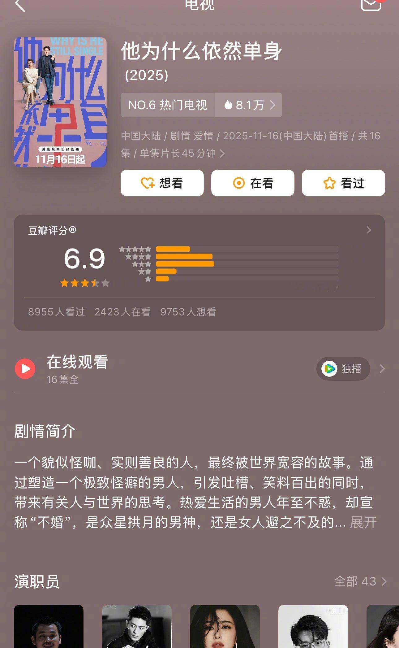 霍建华朱珠《他为什么依然单身》豆瓣6.9分童谣蒋欣《四喜》豆瓣5.5分!不得不说都偏低!