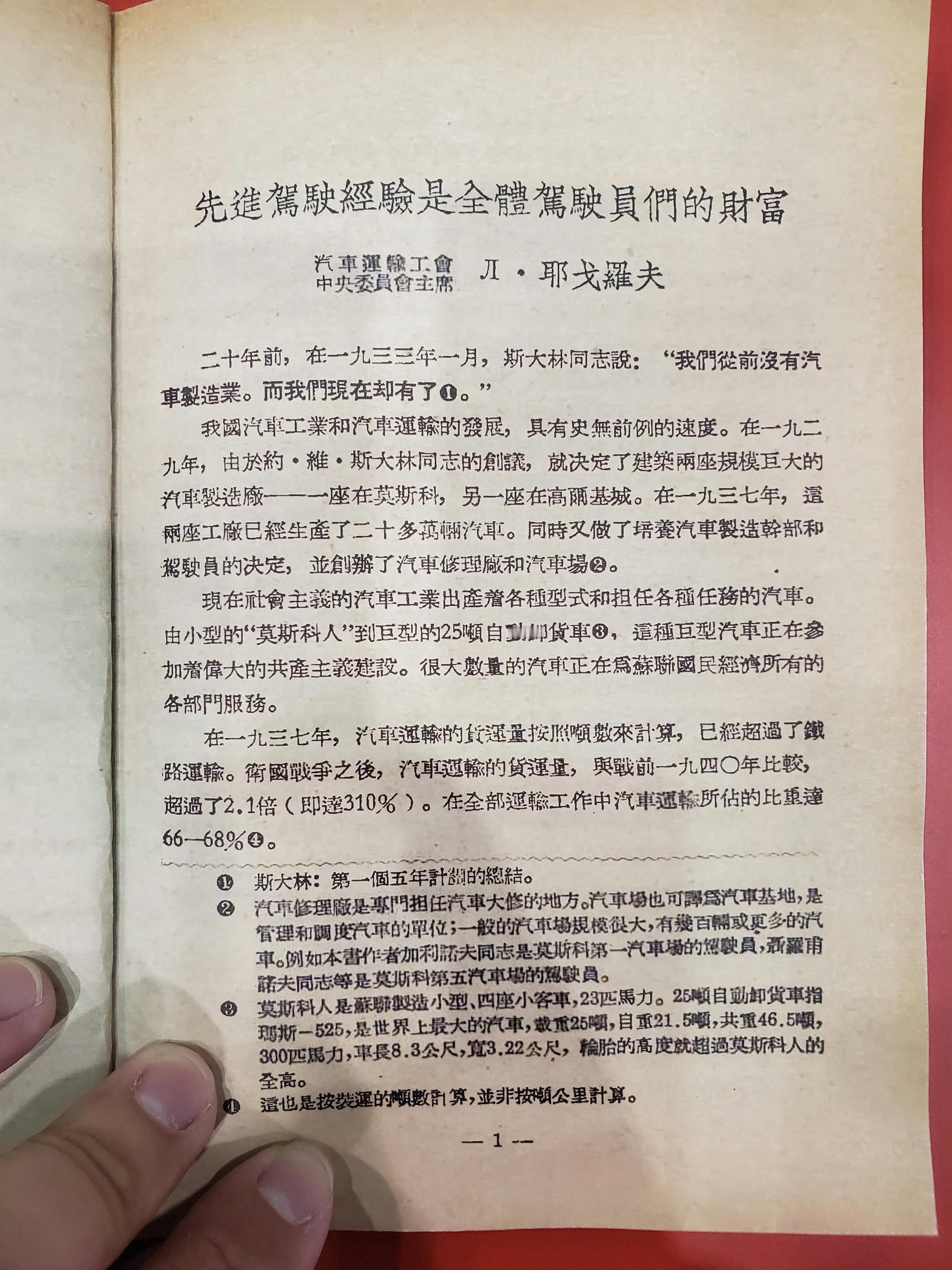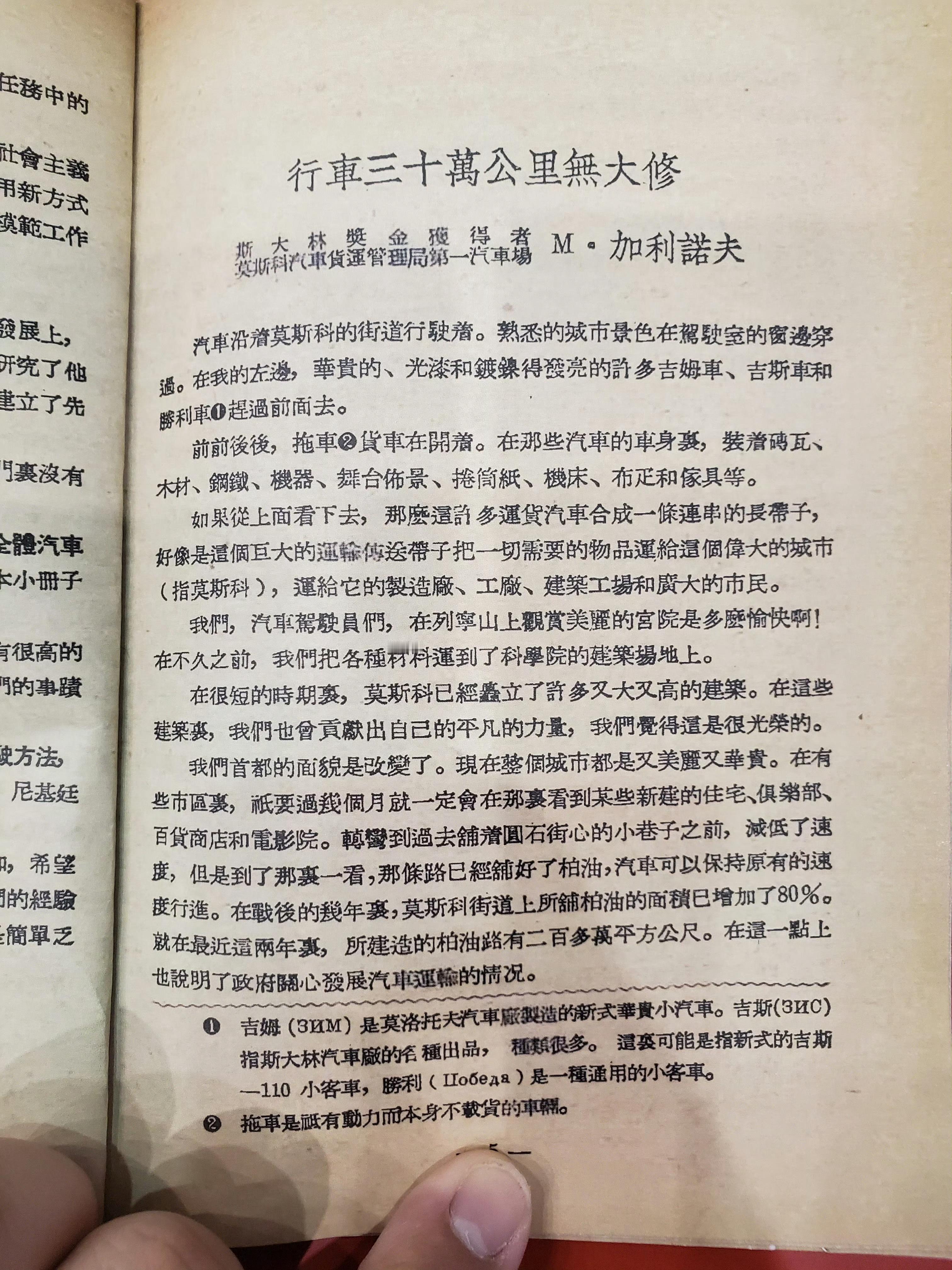 1954年2月人民交通出版社出版《苏联先进汽车驾驶员的经验》