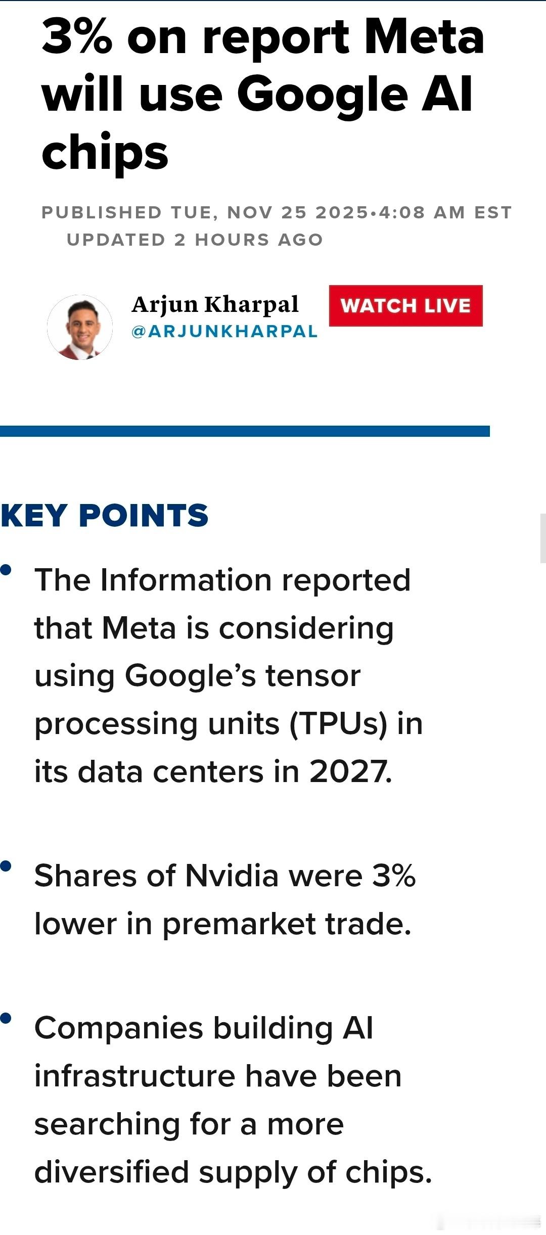 CNBC报道,Meta正在考虑于2027年在其数据中心中使用谷歌的张量处理单元(TPU)。明年META也可能从谷歌云端部门租用TPU。另外 ,OpenAI也叛变了英伟达,OpenAI准备使用谷歌的TPU运行 ChatGPT。因为,谷歌TPU在推理性能上提升了4倍,并减少了65%的成本。昨晚 ,美股大涨。但是,英伟达下跌。Michael消息很灵通,自从Michael Burry公开对英伟达做空以来,过去了23天,英伟达已经下跌了17%。 年初至今,谷歌占标普500涨幅的19.4%,是所有股票中涨幅最高的。英伟达紧急发声热点现场海外新鲜事