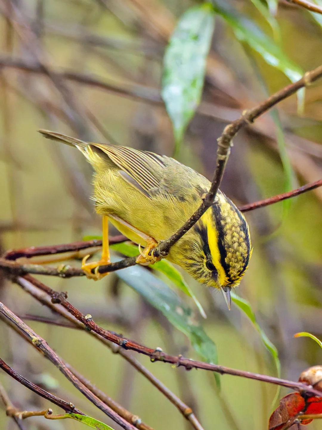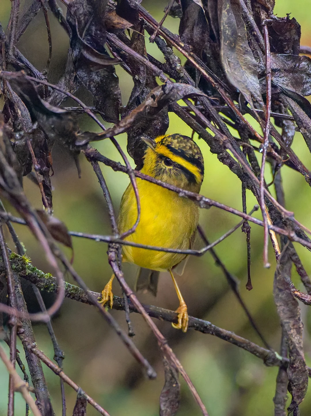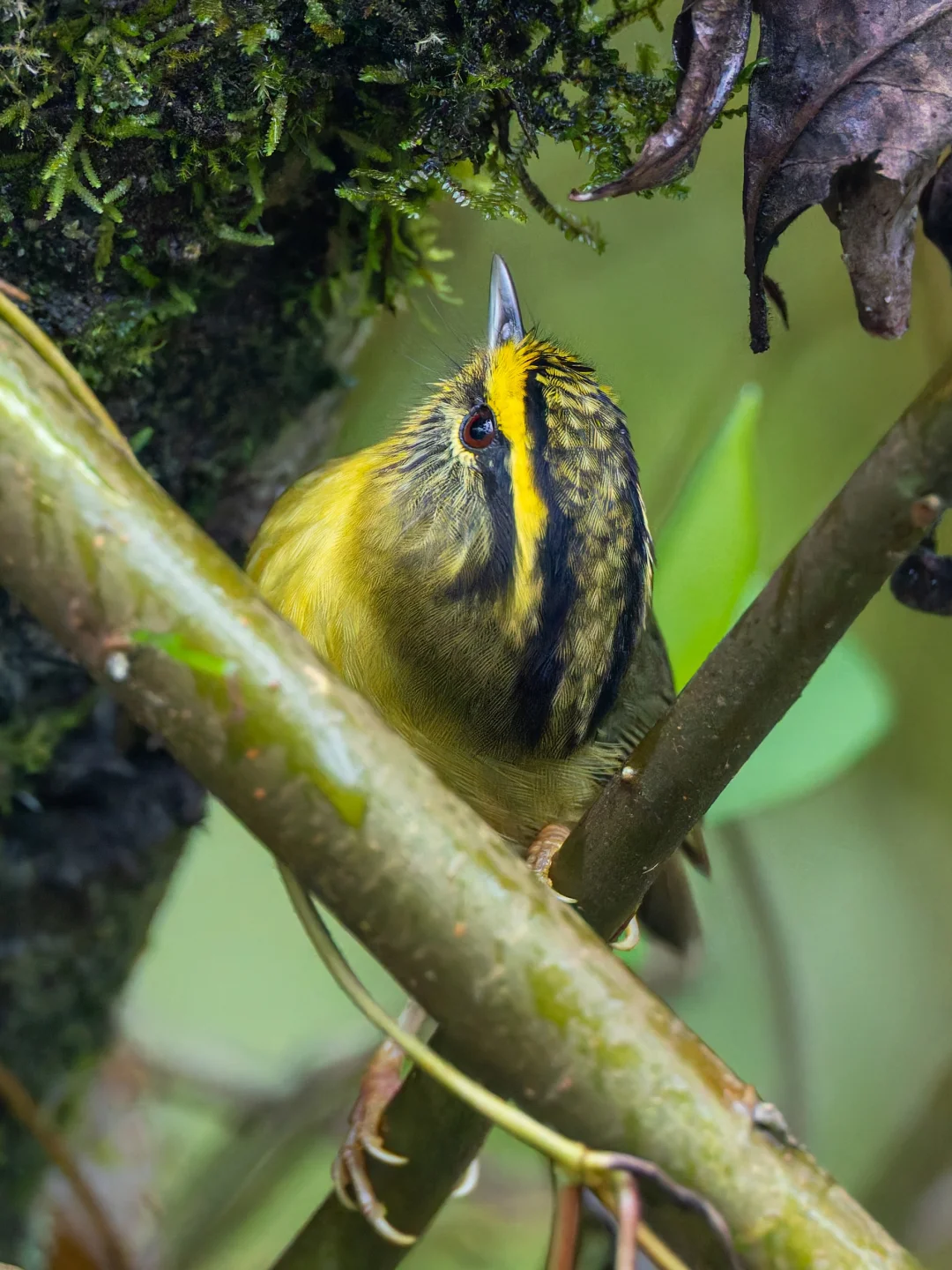 原创拍摄于2025.11 黄喉雀鹛,Yellow-throated Fulvetta,雀形目幽鹛科 Schoeniparus 属。分布于喜马拉雅山脉。 黄喉雀鹛和其他名字叫雀鹛的小鸟相似,非常小巧,黄绿相间,黑边黄色眉纹很明显 。头部有明显的黑色鳞状斑纹,还有一条长长的黑色侧冠纹。 这次我们到墨脱的第一个鸟浪是黄喉雀鹛,自信漂亮的金黄色小鸟,在灌木里跳动,东张西望,像是在找哪里什么好东西。可爱啊。