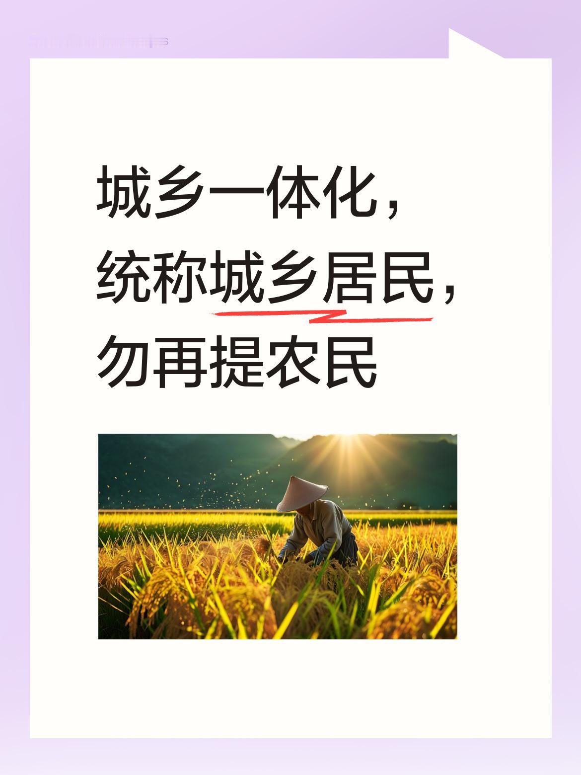 如今城乡已经实现一体化,大家都统称为城乡居民,就不要再特意强调所谓的“农民”身份