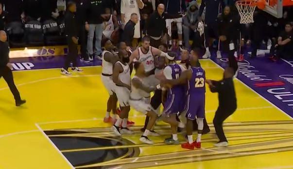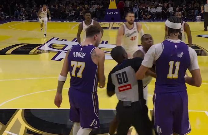 打起来了!这才是洛杉矶德比! 邓恩抢篮板先推倒了东契奇,裁判没有响哨。东契奇起身后走到邓恩面前喷了两句,邓恩拿球直接砸到东契奇胸口,海斯一看敢动我大哥,上来一把推开邓恩,邓恩回手挥了一拳。 裁判的判罚也很清楚,邓恩两T被驱逐,海斯吃到1个技术犯规,保留了有用之身。 海斯经过这一场比赛,荣升为东契奇的头号保镖。