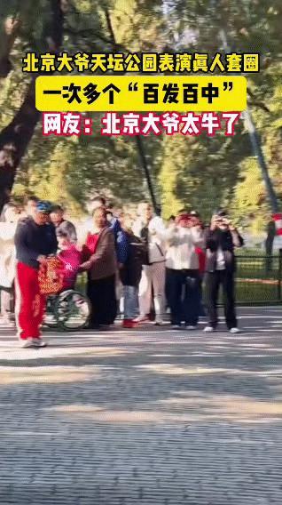 天坛“真人套圈”火了!北京大爷百发百中看呆路人 天坛公园里,几位北京大爷把“真人套圈”玩出了新花样。 人群围成一圈看热闹,只见大爷们排着队弯腰站好,手里攥着圈的那位大爷瞄准、甩臂,一个接一个的圈稳稳套在同伴身上,一次扔出好几个,竟然全都“百发百中”。 周围的路人纷纷拿起手机记录,现场笑声和喝彩声不断,网友看了都忍不住感叹:北京大爷这身手,也太牛了! 果然,大爷还是你大爷,就没有大爷们想不出的玩法。套圈绝技 天坛北京大爷 套圈玩法 大爷