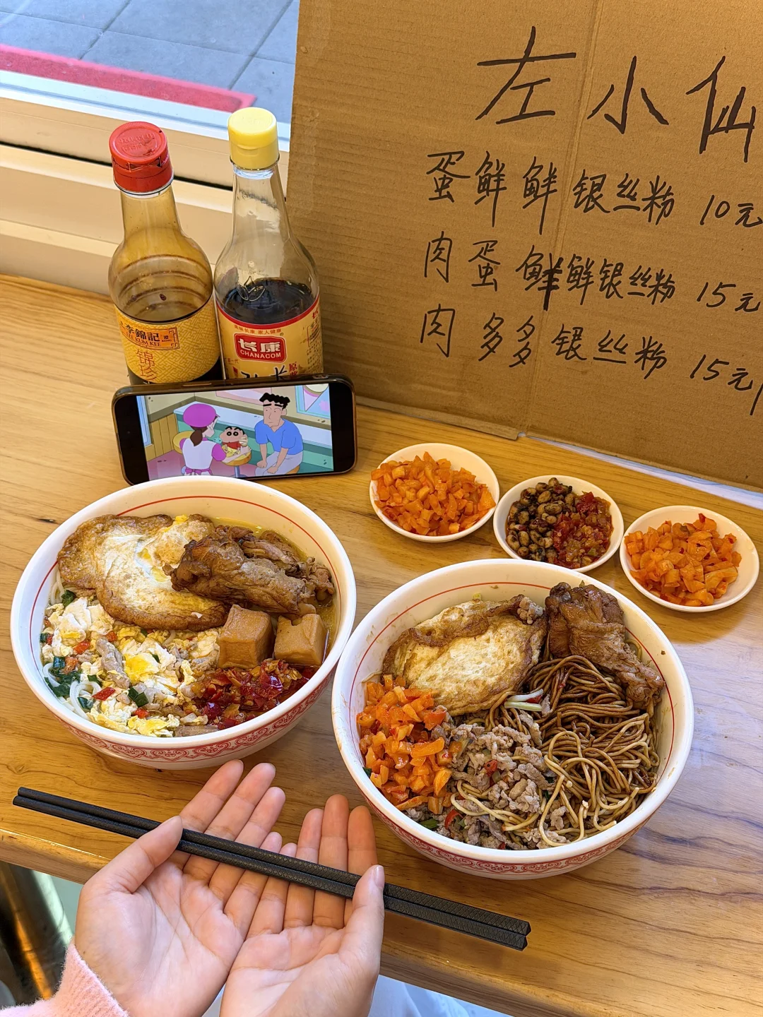 感谢湘乡本地人推荐这家(左小仙)实在是香啊😭正宗湘乡银丝粉的味道,我爸妈一个月都去吃789次!均价十多块左右一碗,码子都是明档现炒的,好吃绝了!每次连汤都不放过…很多免费小菜配料可以自选!喜欢嗦粉的姐妹们一定要记一下这家!!!