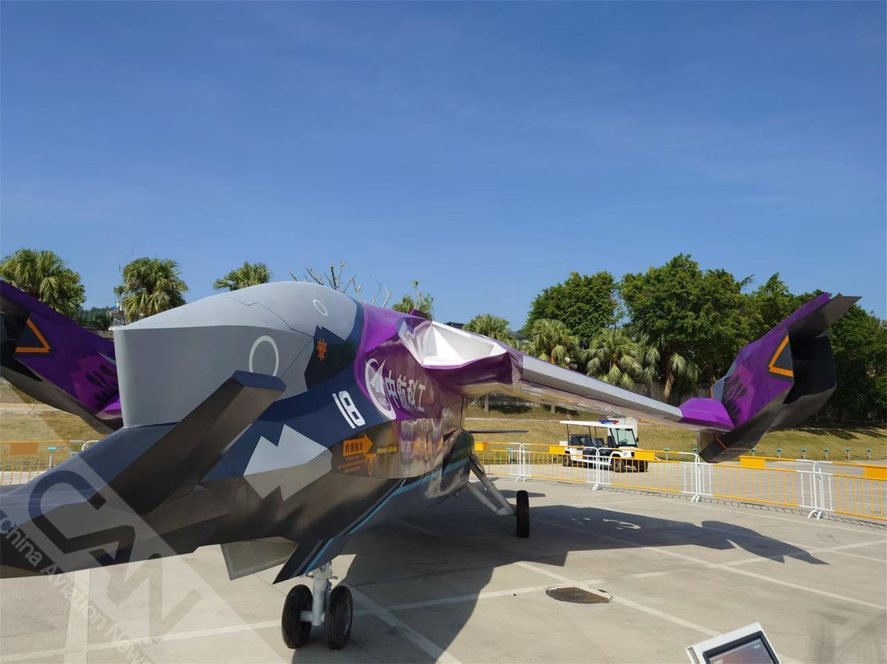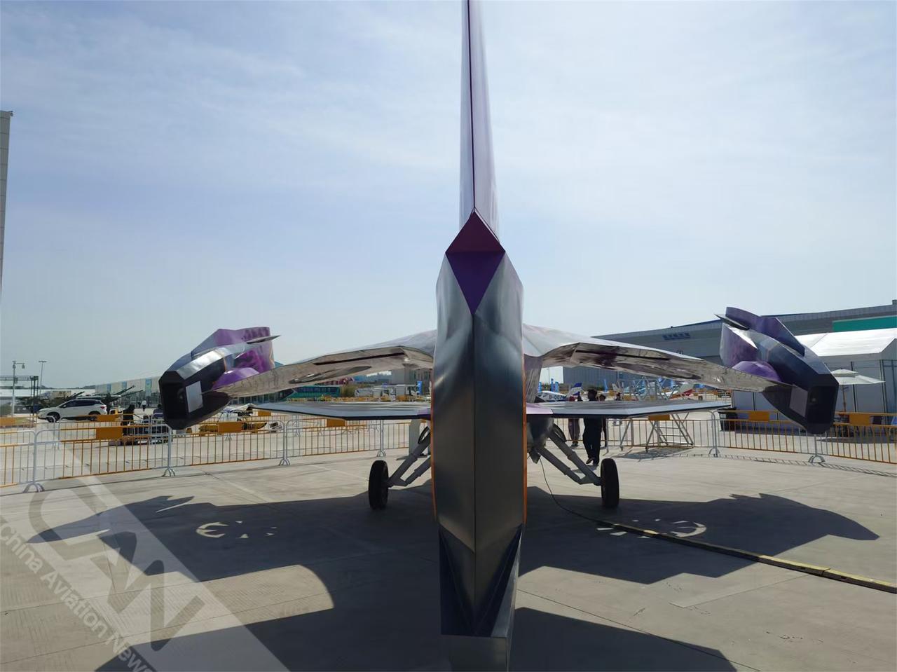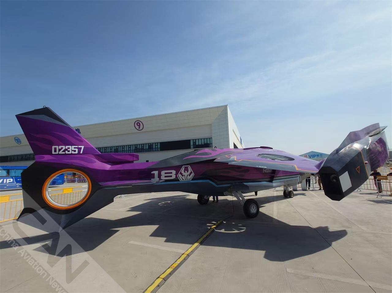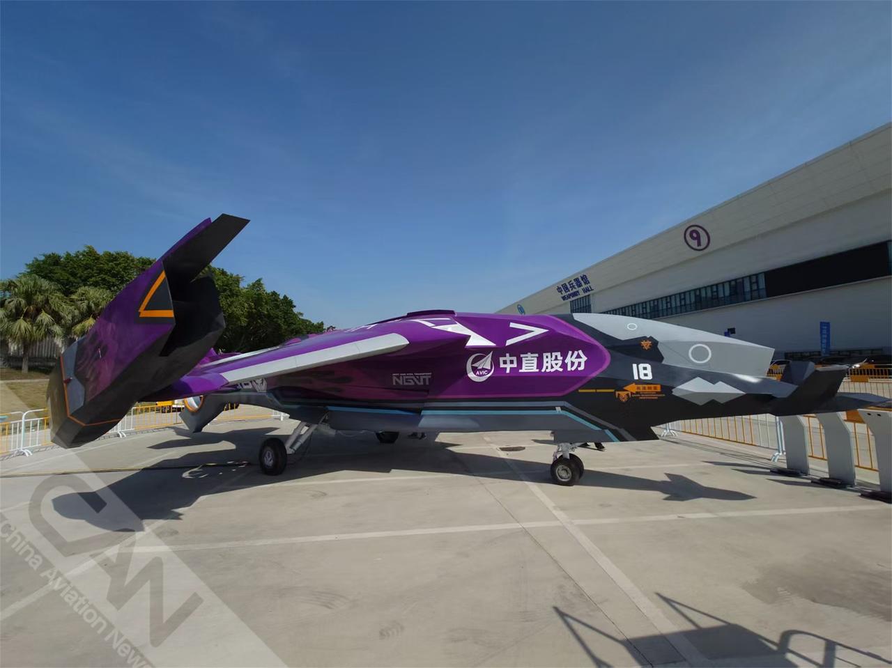 在2025年亚洲通航展上,中直股份、中航环球将携科幻IP“南天门计划”新机型“紫火”概念战机模型亮相,倾力描绘“航空高科技改变未来生活”的壮美图景。(摄影:刘煊)