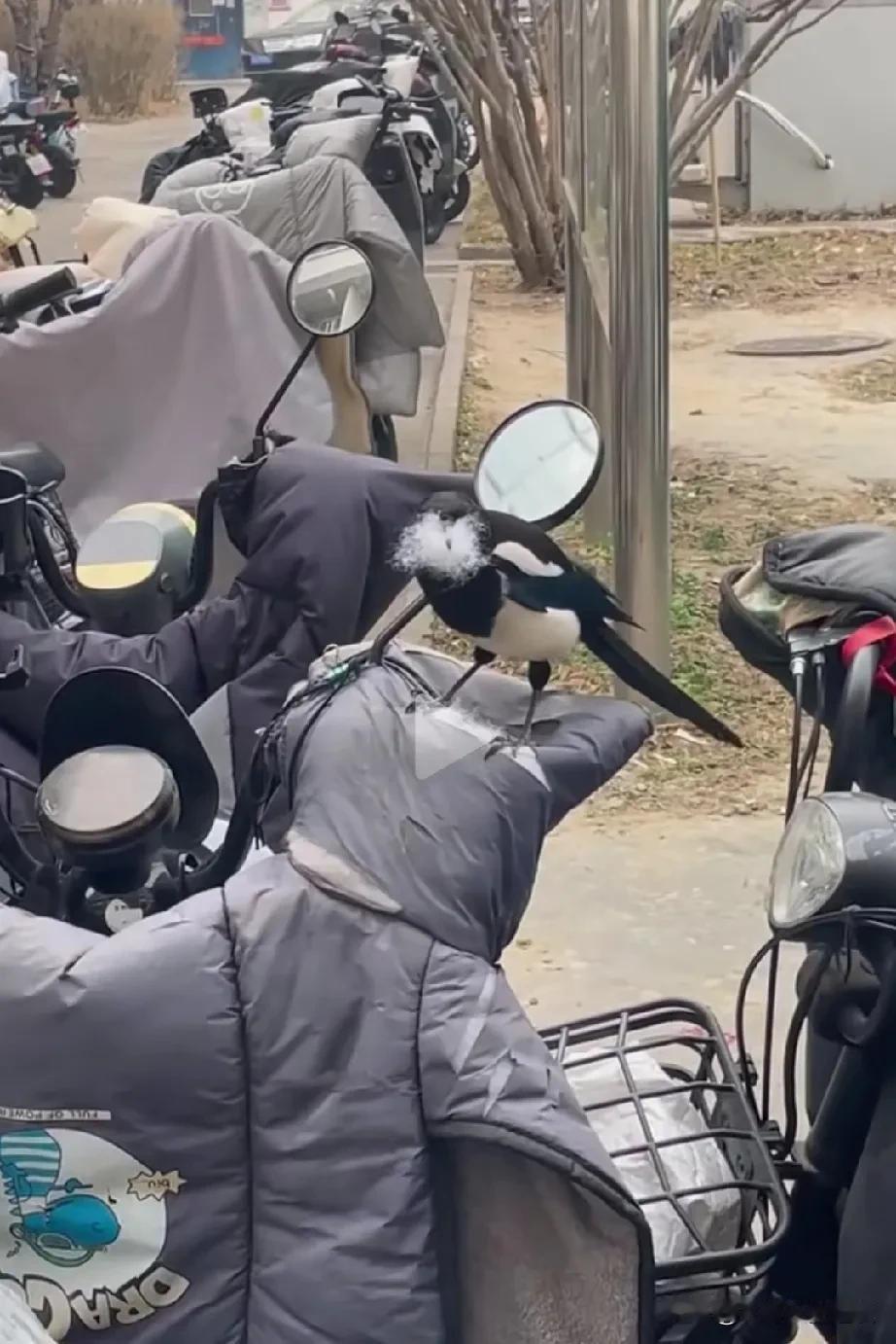 喜鹊太坏了,为了做窝到处找东西,开始薅羊毛。我下班看到一只喜鹊再啄我的挡风被里的棉絮。它也知道那个软和,暖和。很聪明。 但是有人说喜鹊真是喜欢搞破坏,这段时间到处薅棉花垫窝,外面晒的棉被一掏一个洞[捂脸],再过段时间晾晒的腊肉腊肠又要被祸祸[捂脸]。