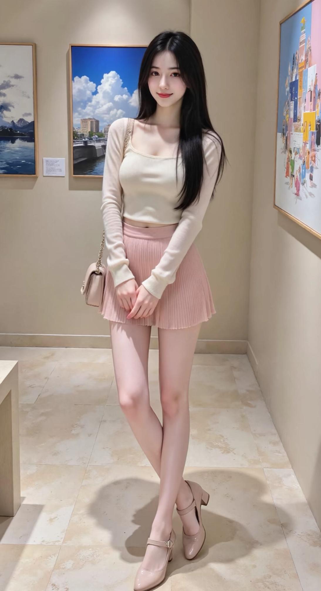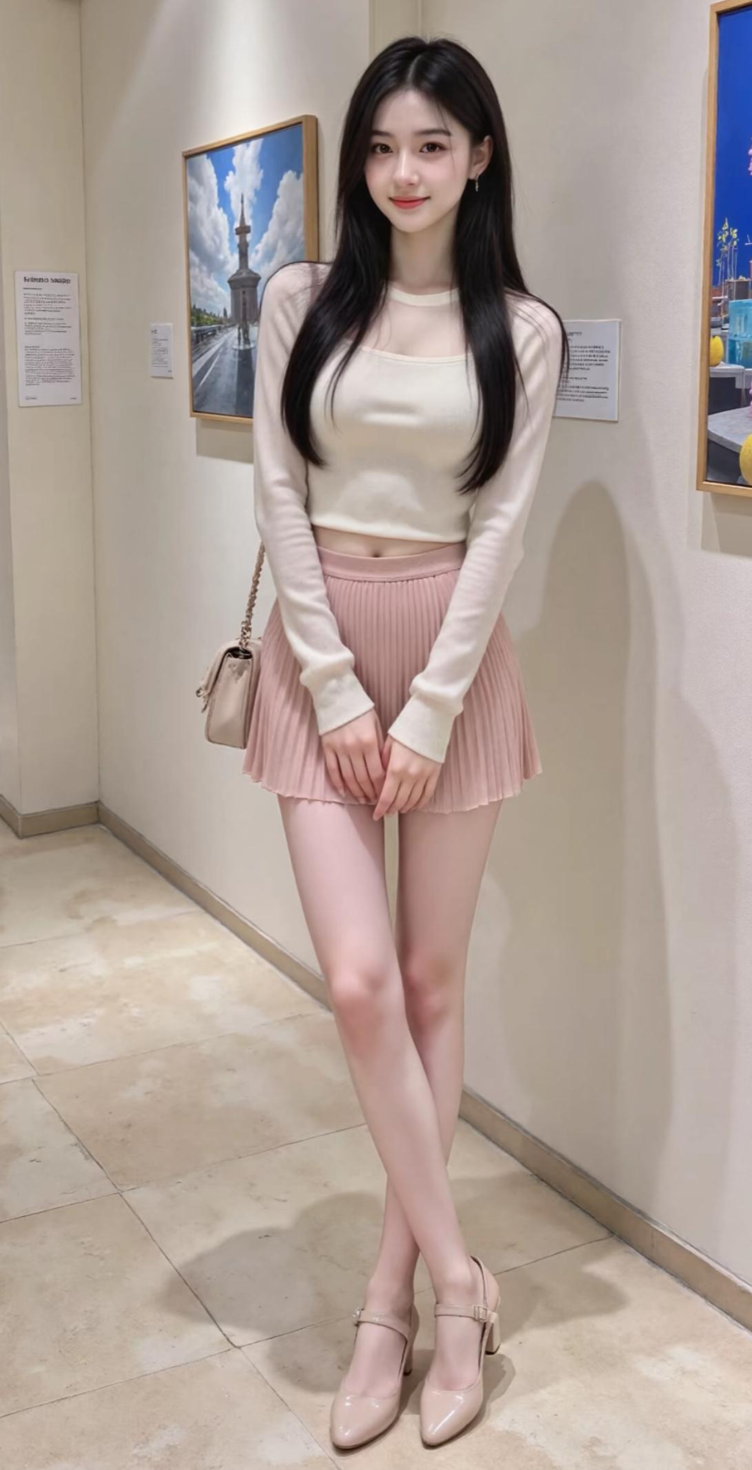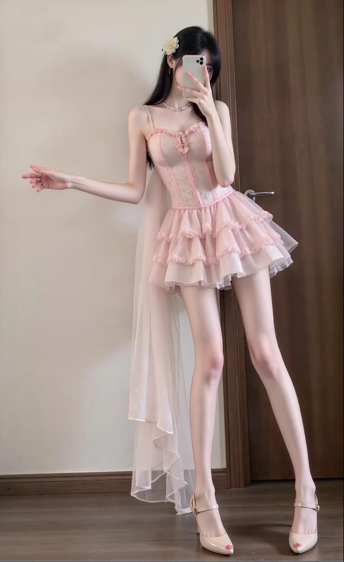 甜美少女风穿搭,粉色短裙搭配米色长袖,轻松减龄!💕👗👠