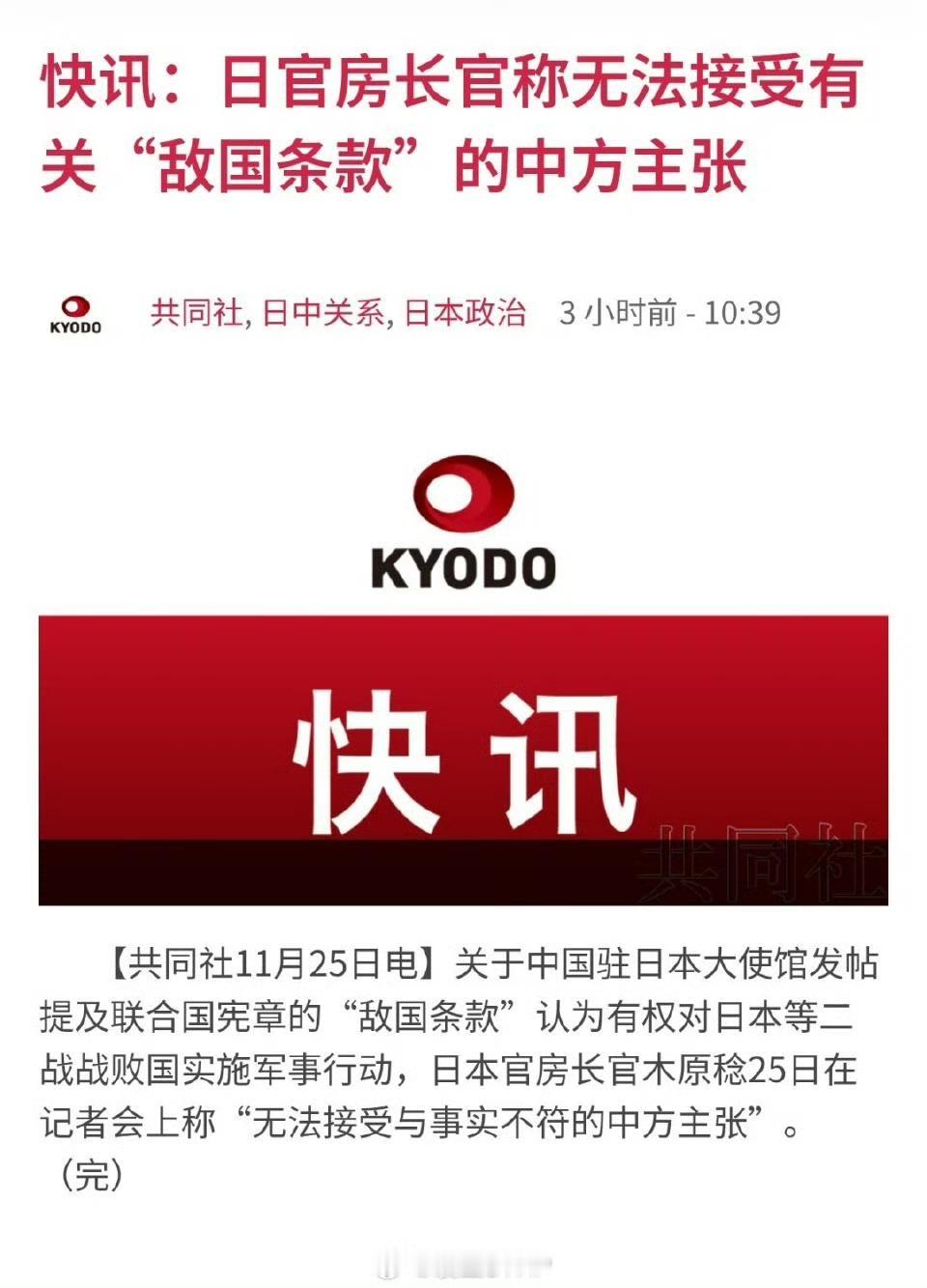 丑话说在前面,管你接受不接受。 胆敢武力介入,等着挨揍。 说白了,这世上哪有“你不接受就不算数”的国际规则?日本要是敢拿《敌国条款》当耳旁风,甚至妄图武力挑衅,那纯属是拎不清自己的定位,等着挨揍就是必然结局! 《敌国条款》不是小日本接受不接受的问题,这是联合国宪章的规定,是对二战战败国的特别条款,就是针对并防止有发动侵略历史的战败国的监督条款和规定!绝对不能让日本军国主义有任何死灰复燃的可能性! 我觉得很多人可能没搞明白,这可不是哪个国家凭空提出来的“霸权要求”,而是二战结束后,全世界为了杜绝侵略战争重演,共同立下的铁规矩。当年日本发动的战争给亚洲乃至世界带来了多大的灾难? 数千万人失去生命,无数家庭支离破碎,这种伤痛直到现在还刻在很多民族的记忆里。 联合国宪章里的《敌国条款》,本质上就是给这些有侵略前科的战败国上的一道“紧箍咒”,目的就是盯着它们,不让那些好战的军国主义思想卷土重来。 对的,这不是中方主张,是依据原本就存在的联合国宪章规定行动而已。我感觉有些国家总爱混淆视听,把执行国际规则说成是“针对日本”,这纯粹是偷换概念。 就像交通规则不是专门针对某一辆车,而是为了保障所有道路使用者的安全一样,《敌国条款》也不是冲着日本单独来的,而是对所有二战战败国的统一约束。 中国只是在履行一个负责任大国的义务,维护联合国宪章的严肃性和权威性,这有什么问题? 难道因为日本不乐意,大家就要把这好不容易立下的规矩抛到脑后,放任军国主义死灰复燃吗?这显然是不可能的,也不符合全世界人民追求和平的共同愿望。 说到这里,就不得不提一个让人警惕的事实:战败国不准有核武器,但日本有军工厂,能在最短时间内组装核武器。我认为这一点绝对不能忽视,也正是因为如此,《敌国条款》的执行才显得更加重要和迫切。 日本的工业基础本来就雄厚,这些年又一直在暗中发展相关技术,虽然嘴上说着“坚持无核三原则”,但实际的能力却让人不得不防。 一旦让日本摆脱了《敌国条款》的约束,以它的工业实力,短时间内造出核武器并不是天方夜谭。 到时候,整个亚洲的安全格局都会被打破,当年被日本侵略过的国家,恐怕又要面临新的威胁。这不是危言耸听,而是基于现实的合理担忧,毕竟历史已经给过我们足够深刻的教训,谁也不想再经历一次战争的苦难。 可能有人会说,日本要是不接受怎么办?答案很简单:不接受找联合国说去,这是联合国的条款,和我们无关,我们只管执行联合国宪章。 我觉得日本与其在这里抱怨“不公平”,不如好好反思一下自己的历史。当年是它发动了侵略战争,给世界带来了巨大的灾难,如今的这些约束,不过是它为自己的历史罪行付出的必要代价。 联合国宪章是全世界共同认可的国际准则,不是日本想改就能改、想不接受就不接受的。 如果日本真的觉得条款有问题,完全可以通过联合国的正规渠道去申诉、去协商,但前提是必须遵守现行规则,而不是想着通过武力挑衅来逃避约束。 丑话说在前面,管你接受不接受。胆敢武力介入,等着挨揍。我认为这句话不是威胁,而是底线。任何国家都不能凌驾于国际规则之上,更不能凭借自己的野心,破坏地区和平与稳定。 日本如果真的敢无视《敌国条款》,甚至采取武力手段对抗国际社会的监督,那必然会遭到严厉的反击。维护和平从来都不是一句空话,需要有足够的实力和坚定的决心作为后盾。 中国和世界上所有热爱和平的国家一样,绝不会允许军国主义死灰复燃,也绝不会容忍任何破坏和平的行为。 以上只是我个人的看法,不代表任何官方立场。你觉得《敌国条款》的执行对于维护地区和平有多重要?对于日本的潜在军事能力,你还有哪些担忧?欢迎在评论区留下你的观点和想法,我们一起交流讨论。