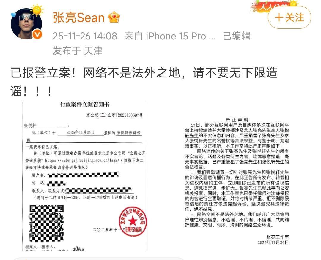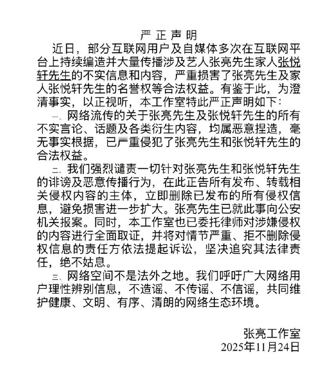 模特张亮已经报警,并且发布了律师声明,说近期网络上有关于他和儿子的大量不实信息和内容,严重侵犯了名誉权。 我看了一下,确实有报警回执,也有相关的声明。但是网友们造谣什么了?张亮没说,我看评论区的网友好像也不知道。 话说张亮儿子之前好像因为谈恋爱的事情上过热搜,然后张亮也回应了一下 但总的来说,对于自己孩子早恋的事,张亮似乎并没有过多约束。 青春期的孩子嘛,对什么都好奇。希望网友们嘴下留情,也希望张亮不要太严肃苛刻。 富二代嘛,总会有些个性,大家肯定都会原谅的。
