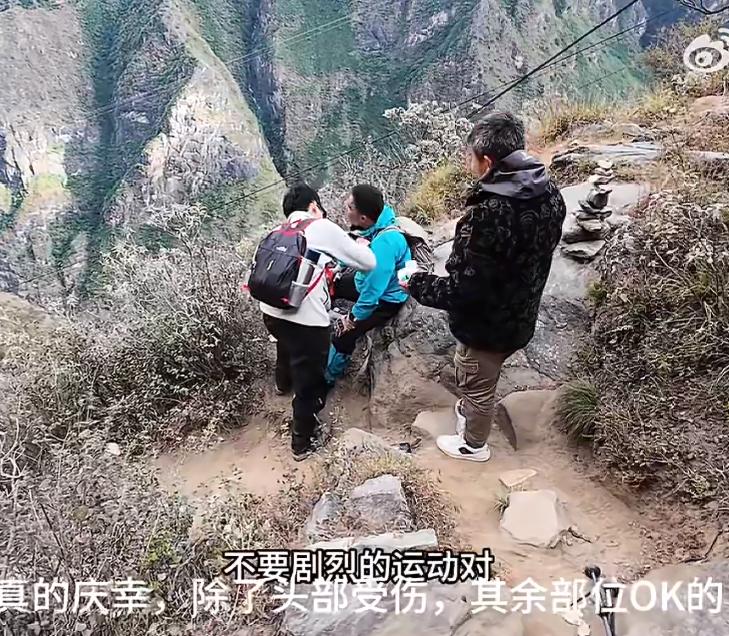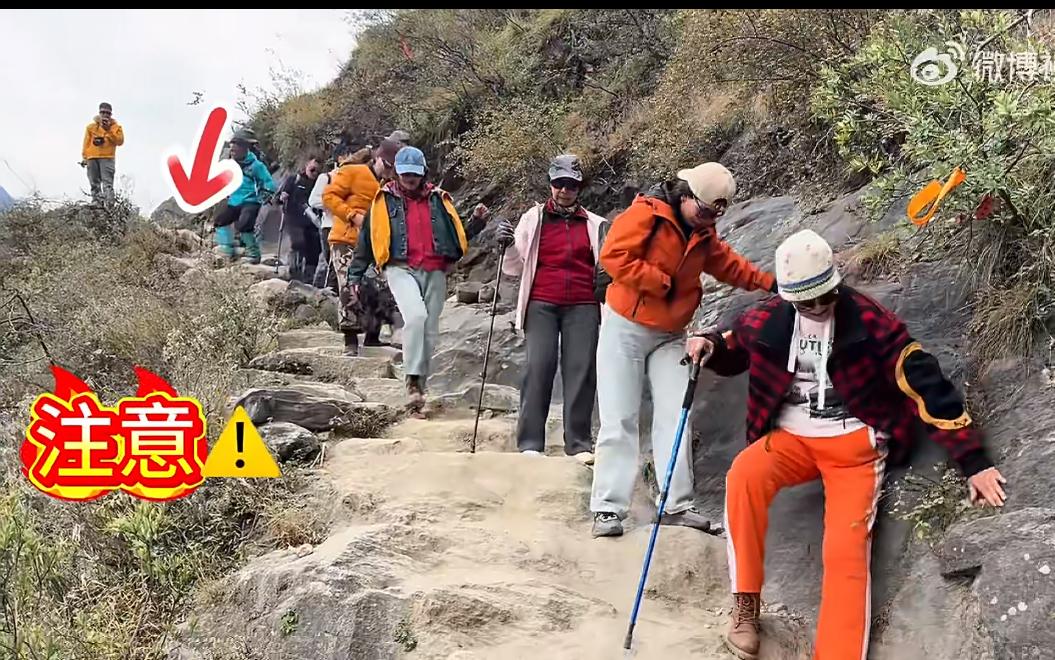 一队老年退休徒步团,暴走虎跳峡,一个老登一脚踏空摔下去了,还好下面坡势平坦,也有很多灌木丛,把人给挡住了,要不了就直接滚落金沙江里去了。一把年纪还不服老,还要玩这种极限运动,关键还不听指挥,在这种陡峭的地方强行超队友,结果悲剧了。虎跳峡旅游区 百岁老人徒步