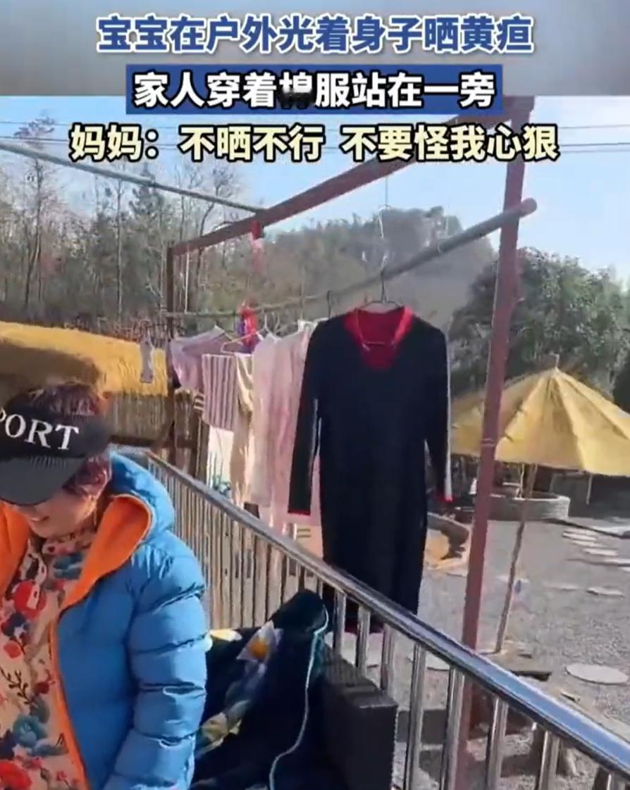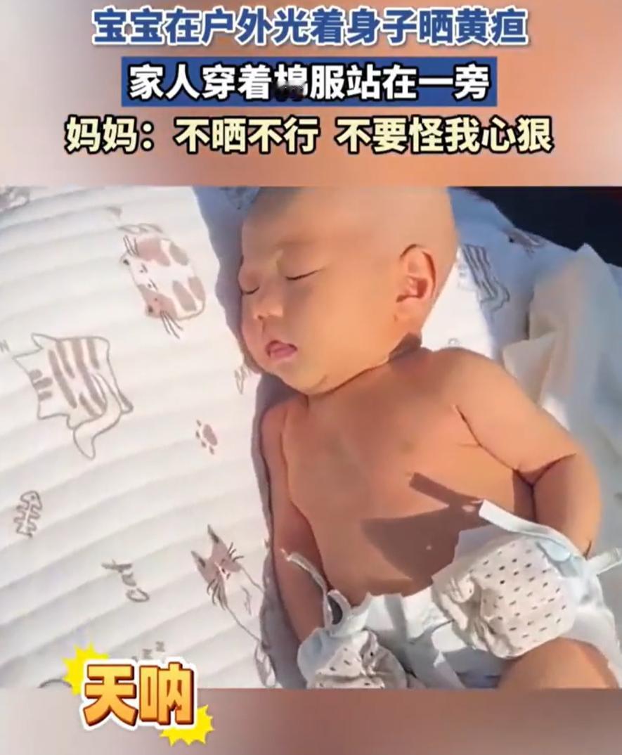 这咋想的?江苏,一位刚出生不久的宝宝身上长了黄疸,宝妈听说晒太阳有效果,就直接带着宝宝到户外去晒,可她穿着棉袄站在旁边,却把宝宝脱光放在户外,网友:家里没玻璃窗户吗? 视频中,她把宝宝放在小沙发上,脱得只剩尿不湿,光溜溜地暴露在空气中。而她自己却裹着棉袄、戴着帽子,站在一旁看着孩子晒太阳,还笑着录下视频传到网上,配文说:不晒不行,不要怪我心狠 视频一出,网友们坐不住了。这么冷的天大人都穿着棉袄,却让刚出生的婴儿光着身子躺着,这不是在治病,是在折腾孩子。有人直接质疑,家里难道没有玻璃窗户吗?隔着玻璃晒太阳不行吗?非要让孩子冻得发抖? 大家不是在挑刺,而是真担心。宝宝这么小,体温调节能力不成熟,冷热变化对他来说完全不是一个量级,冷风一吹就可能扛不住。宝妈穿棉衣是冷,宝宝难道就不冷? 更关键的是,晒太阳并不是非要户外直晒。把宝宝放在有玻璃的窗边,拉上窗帘让光线柔一点,家里开着暖空调,眼睛遮一遮,照样能晒到适量的光。这种方法医院里说得很清楚,家长群里也流传了很多年,便利又安全 这位妈妈的初衷是好的,想让孩子快点好起来,但方法确实欠考虑。新生儿体温调节能力差,对环境温度非常敏感。在低温环境中暴露,不仅无法有效退黄,反而可能让孩子受凉感冒。真要这样,估计这位宝妈就笑不出来了