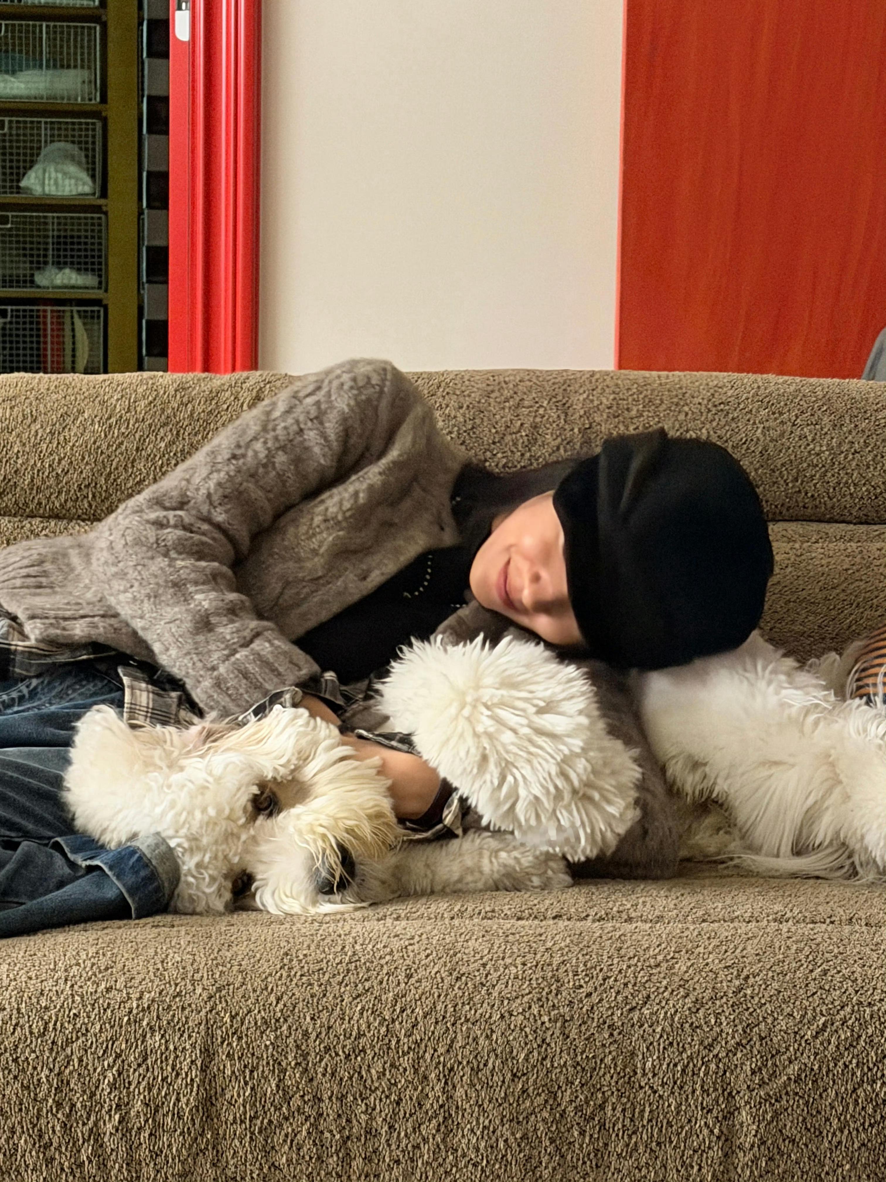 庄达菲日常照分享 分享日常和小狗在一起就是舒服又放松呀,让人看了好治愈那么问题来了,图片里有几只小狗捏