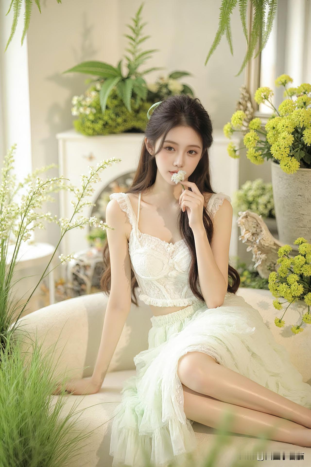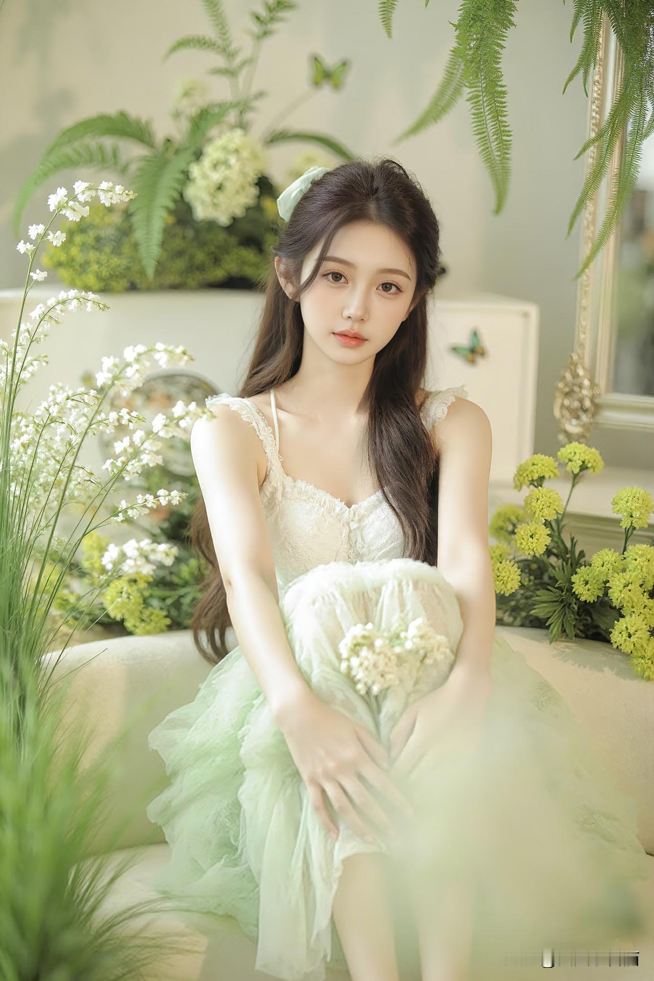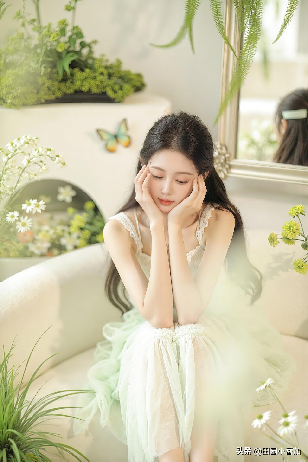 『优雅气质ℓ薄荷梦境🌿』 倘若生活能披上一层滤镜, 我想,那定是如薄荷般清透的绿。 轻盈如梦,慵懒如风, 不喧哗,不浓烈, 却刚好点亮了时光的温柔💚 在这片绿意里🍃, 心也悄然慢了下来, 像风拂过叶尖, 像阳光洒在草尖的瞬间。 梦与现实,懒与静好, 在此刻,刚刚好。 高雅气质美女