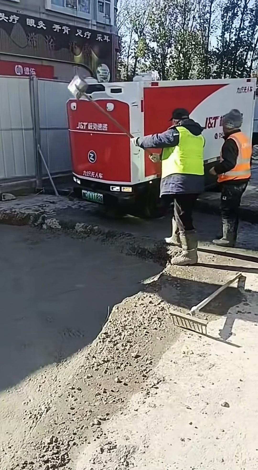 无人快递车不听调度,硬闯施工现场,径直往刚浇筑的水泥路上开去,这可让负责将水泥面扒平的工人犯了难。要是让车子继续前行,那自己忙活许久才抹平的水泥面,又得重新处理! 说起这无人快递车,说它不厉害吧,它能穿越各种路段,帮商家把快递送到客户手中;说它智能吧,它又常常闹出令人哭笑不得的事儿。就如画面中的这一幕,面对工人挥手阻拦,它毫无反应,依旧驶入刚浇的水泥路,甚至有报道称,它还会与对面驶来的车辆僵持不下。 冬日生活打卡季