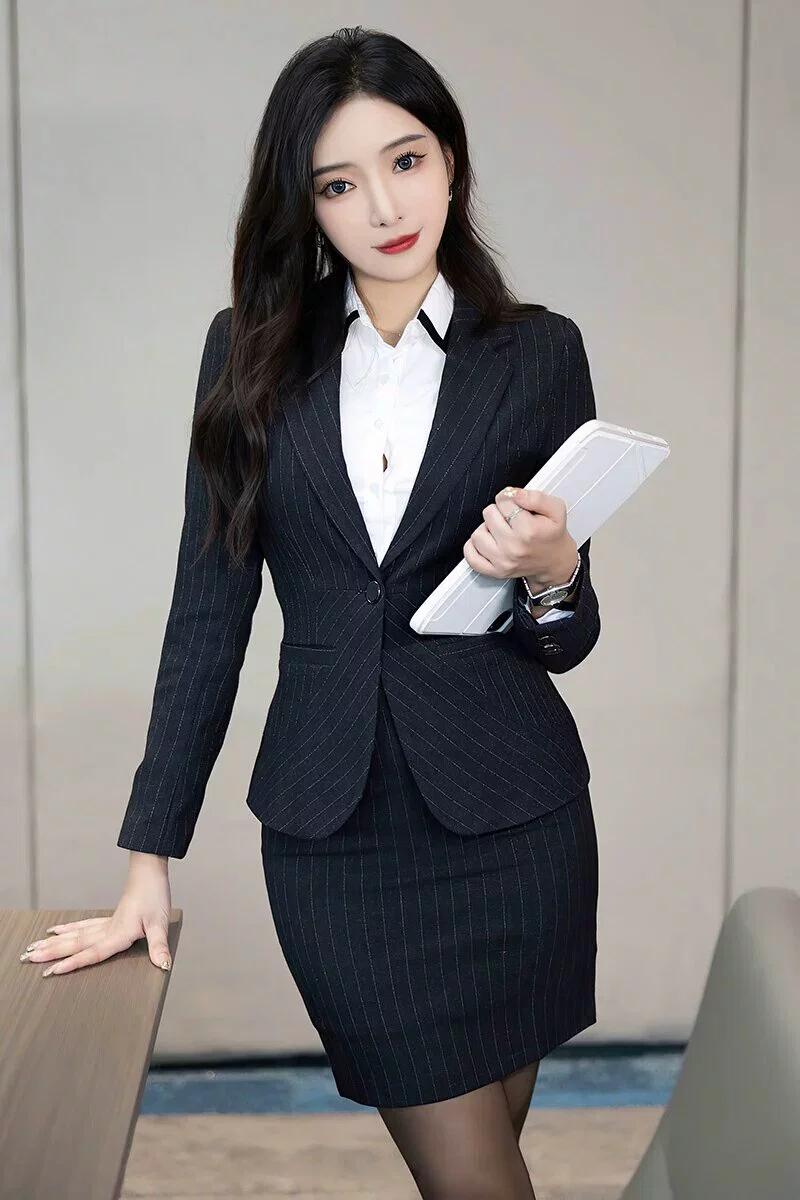 条纹西装套裙+柔光丝袜这组职场穿搭,丝袜直接是“氛围王炸”!薄透肌理像给腿敷了层隐形高光,细腻光感衬得腿型匀净又精致,和利落西装撞出“刚柔并济”的反差——西装是职场的干练底气,丝袜是藏在细节里的精致小心机,踩上高跟连走路都带着“精致到脚踝”的自信气场,职场魅力直接翻倍✨