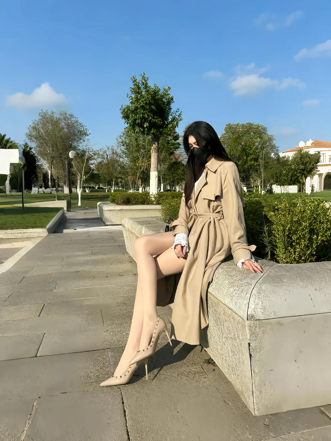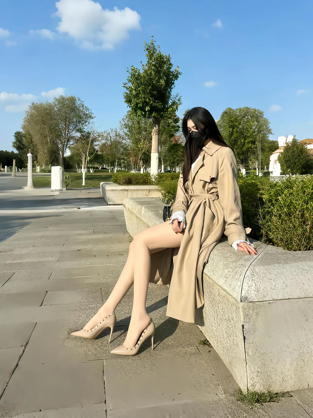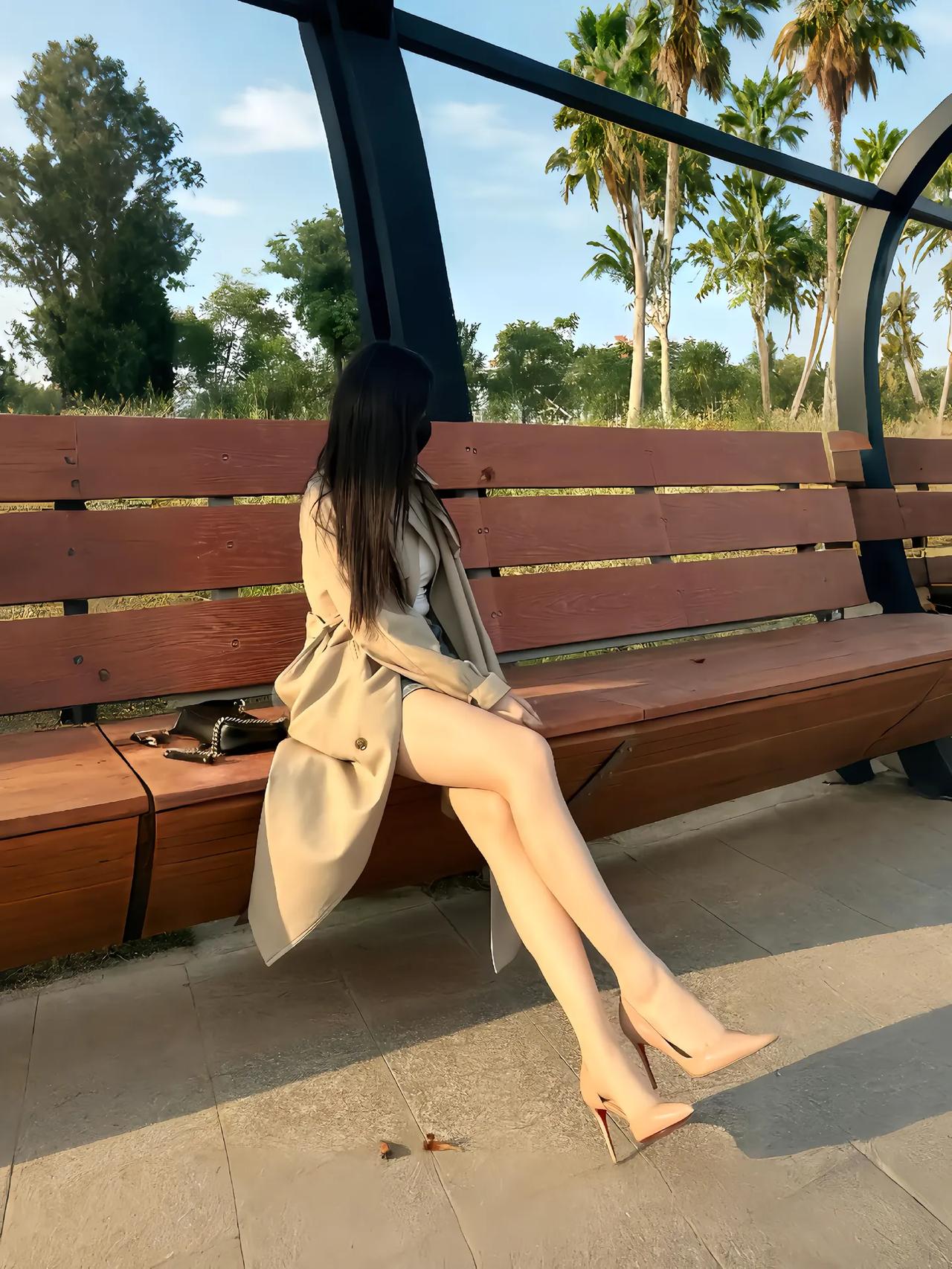 卡其风衣裹着晴日的软,鞋尖那抹红是风里藏不住的小雀跃。长椅浸在暖光里,椰影轻摇,石阶旁的绿意漫延成温柔底色。光影放慢脚步,与衣摆的弧度、步履的从容相拥。这片刻的松弛,藏着不疾不徐的惬意,把寻常光景酿成诗,每一缕风都裹着恰到好处的美好,在时光里轻轻流淌。