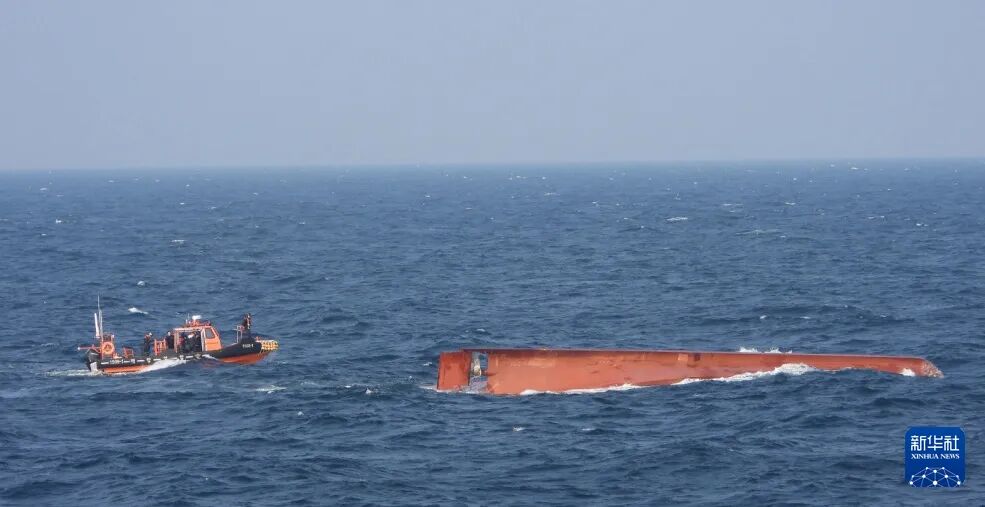 这是11月9日在韩国全罗南道可居岛附近海域拍摄的中国渔船倾覆现场图/新华社