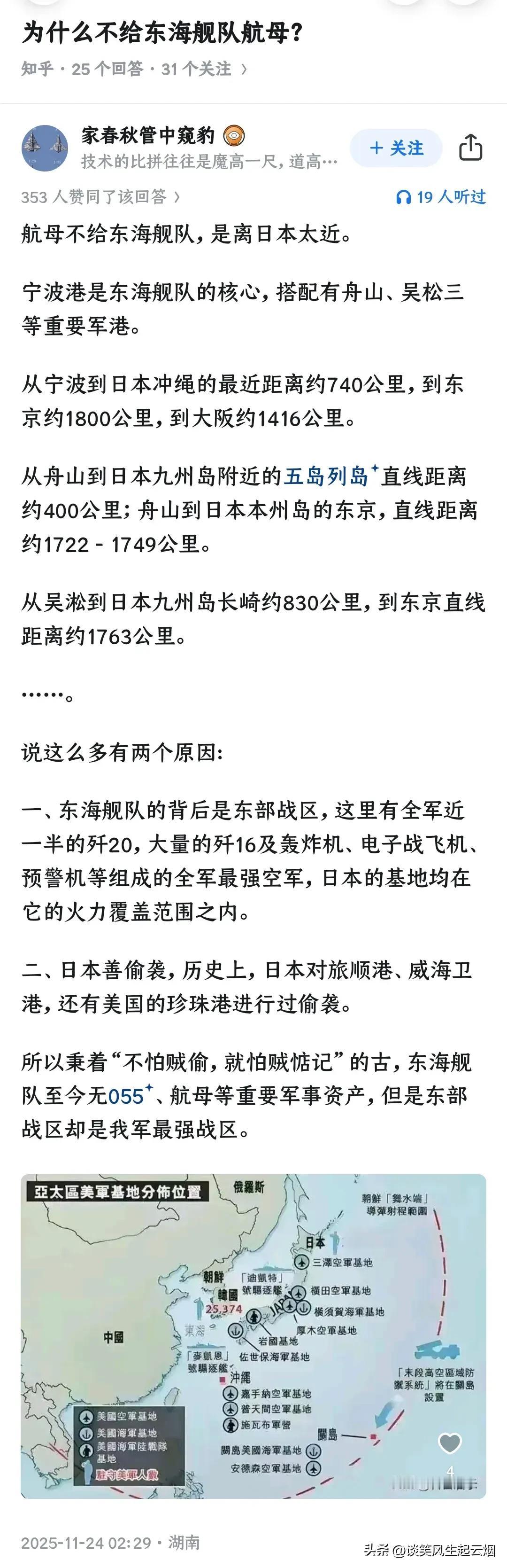 东海舰队无航母,是离日本太近! 日本历史上的对外战争,绝大多数是通过偷袭开始的。所以谨防日本偷袭,就是东海舰队的最大任务之一。现在日本那个搞事者,坚决要搞事到底,就一定要小心日本偷袭。 海军装备太值钱,所以必须得予以重点防护。北海舰队和南海舰队,还需要更多的航母,也许以后东海舰队会配备航母,不是现在。 说到底咱们的主要对手,还是在东边的大海,美日联手确实有威胁,东海舰队实力最强,是陆军和空军在加持。因为咱们走的是光明正大之路,不会偷袭对手。但是日本却不管这套,就是以偷袭起家的。 中日会开战吗,凡事皆有可能!