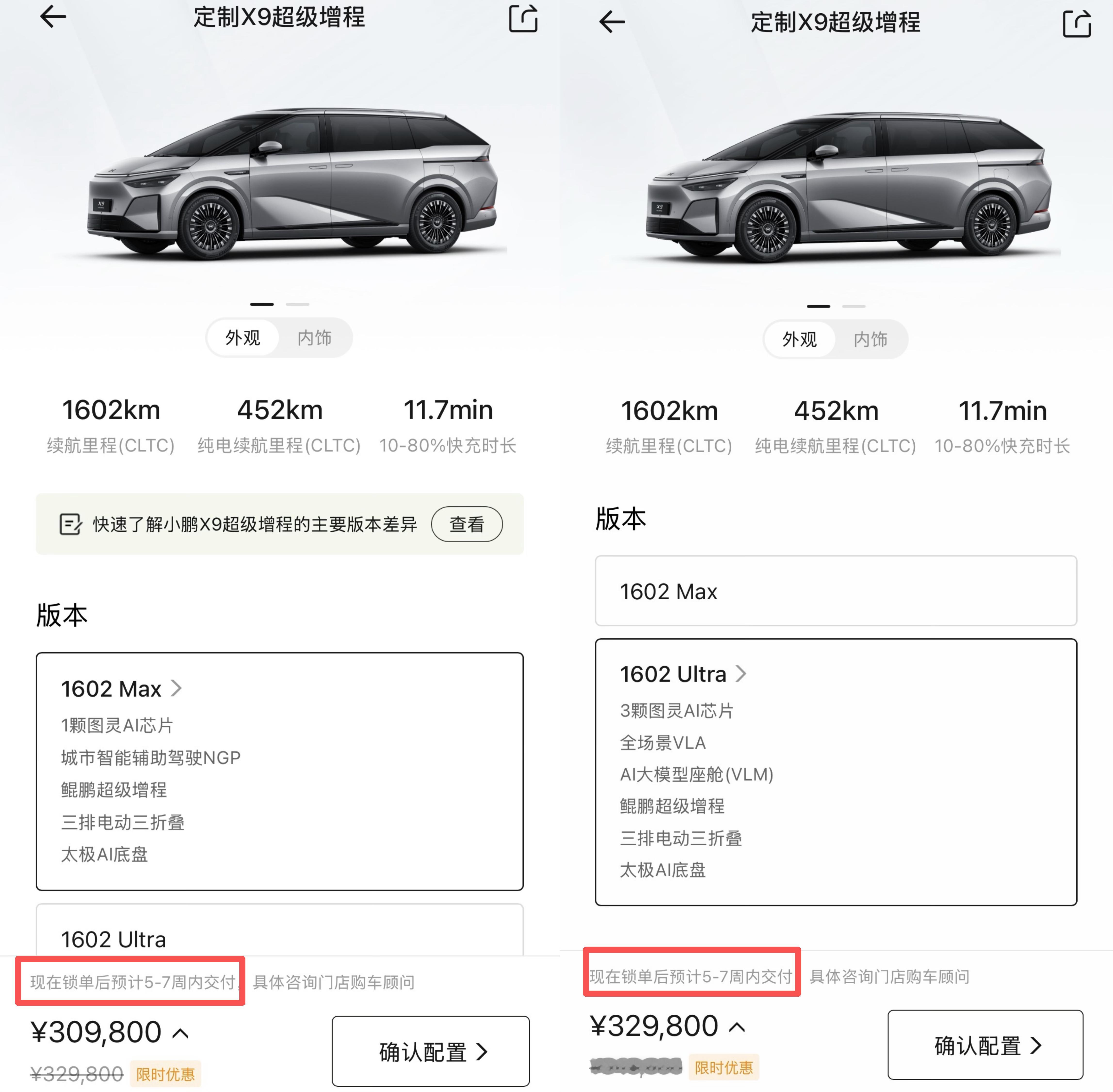 小鹏X9超级增程11月20日上市1小时就打破X9历史全天大定纪录,72小时内全国均店新增订单20 - 25台,进店量占比大幅提升。北方市场更是惊艳,全国订单占比首超50%,哈尔滨、石家庄等地订单暴涨。1602km超长续航等优势精准戳中北方用户冬季出行痛点,79%用户选了1602 Ultra版。如今Max、Ultra版交付周期延至5 - 7周,小鹏还推出“跨年购置税补贴”方案:12月31日前锁单用户,可享至高1.5万元购置税退坡补贴,订单又要蹭蹭蹭往上涨了。小鹏高管曝X9超级增程北方多地订单翻倍