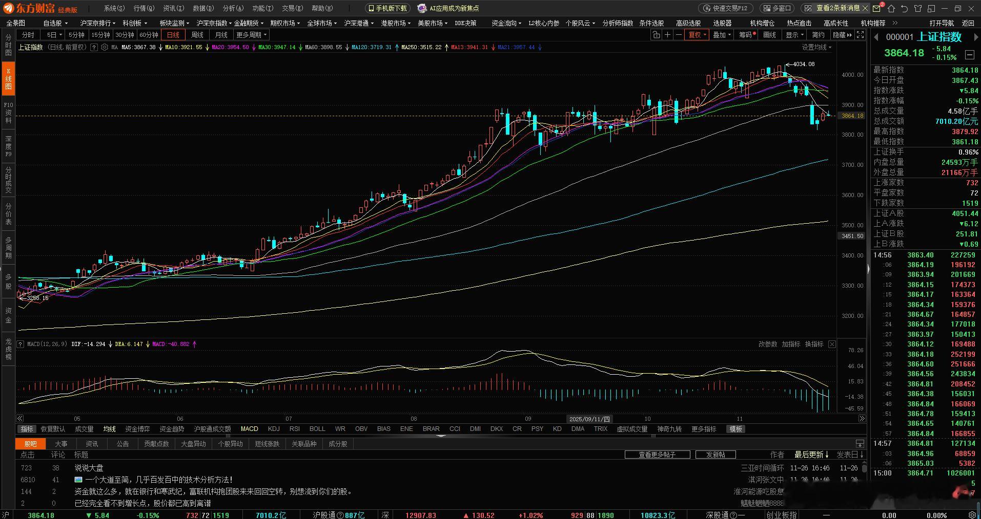 大盘今天是典型的指数波动不大,但是个股下跌较多,明天个股情绪非常关键,原则上来讲,明天的个股情绪可能还得继续跌一下;二是明天可能会出现银行等权重稳定大盘指数,创业板指数可能会迎来回调整理。今天拉升创业板指数,银行下跌,而午后CPO等抱团科技大涨后有所回落,短期AI应用和硬件等有所反弹,接下来会走分歧,科技成长遇阻的话,资金或许会选择银行避险;如果明天真的出现银行拉升,那个股情绪也不会太好,创业板指数也会受到影响调整;最为关键的是,创业板指数今天刚好到了60日均线附近遇阻,港股恒生指数也是反弹到60日均线附近遇阻回落。大盘指数还没有触及60日均线的位置,估计还有大盘股要稳一稳指数,但是要记住各大指数在60日均线附近都会有压力;总的来说,本周的这三个交易日,整体是科技成长等风格占优,而随着今天量能再次萎缩,下半周的行情可能会再次回归到防御为主;股票股票股市投资投资大盘行情今日操作今日a股