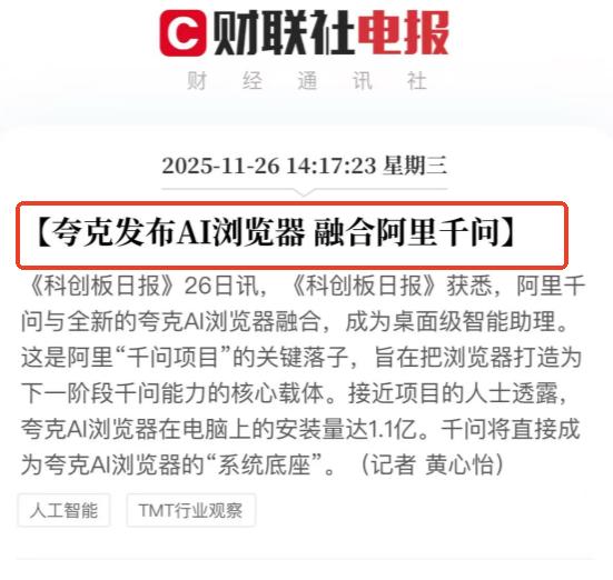 西方没有想到,中国正在定义下一个生产力时代! 中国在前几次工业革命中都没能抢占先机,以至于我们在一些行业、产业的发展落后西方一拍。不过AI时代到来,中国正在改写规则。 最近有一个论调挺火的,就是中国AI应用正跑出全球速度,像阿里千问APP开启公测仅一周时间,下载量就突破千万,增长速度之快甚至超过ChatGPT、Sora这些早早进入市场的AI应用。 我觉得增长速度不是关键,最关键的是背后的推力,是阿里千问对产品的底层能力进行系统性重塑,这才是大家最重视的地方。说白了,AI能力再强大,如果无法在日常场景中派上用场,成为人人可用的生产力工具,就失去了意义。 所以阿里千问要全力进军C端市场,覆盖更多的应用场景。在手机移动端,千问AI助手已经证明了它的价值和吸引力,现在又马不停地发力PC端,与全新的夸克AI浏览器完成了深度融合。 虽然谷歌等国外厂商已经在浏览器上推进AI,但是并没有实现真正的融合,顶多只能称之为插件AI。而搭载千问AI助手的夸克AI浏览器则不同,它不单单是把AI放进了浏览器,而是让浏览器成为了AI。 就这么说吧,在夸克的全局AI能力下,用户即使在没有打开浏览器的情况下,也可以唤起千问AI助手了,真正做到即问即答。 比如说咱们在浏览网页时,就可以通过夸克AI浏览器的千问侧边栏,调用AI能力,有什么不懂的,即时向千问提问,AI就会帮我们进行内容解读、翻译。 如此来看,夸克AI浏览器真正在产品形态上做到行业领先,正在打破我们对于传统PC端浏览器的认知,让AI成为生活、办公等日常场景中的生产力工具,中国AI正在定义下一个生产力时代。