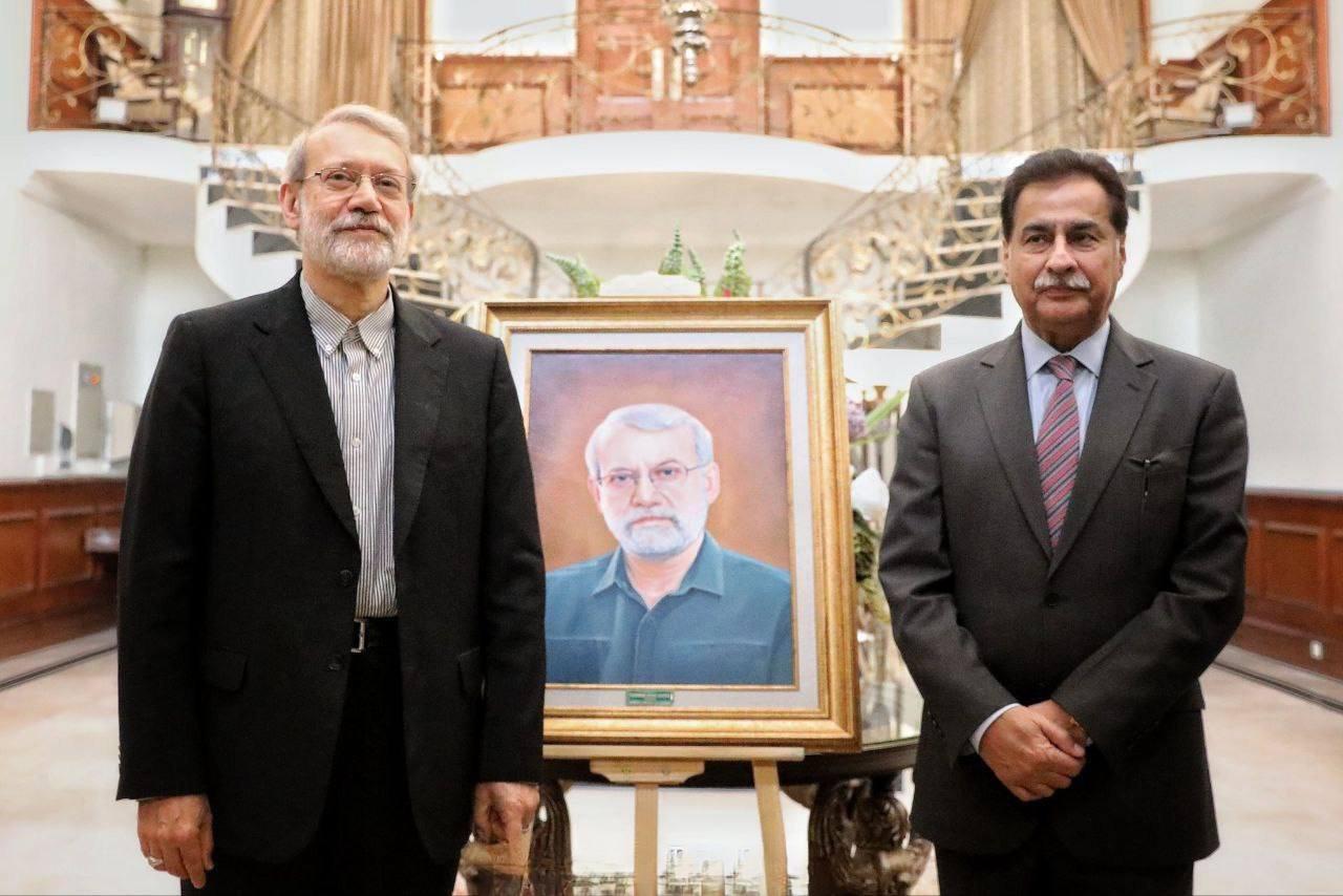 伊朗最高国家安全委员会秘书阿里·拉里贾尼抵达伊斯兰堡,巴基斯坦方面送了他一幅他的画像。