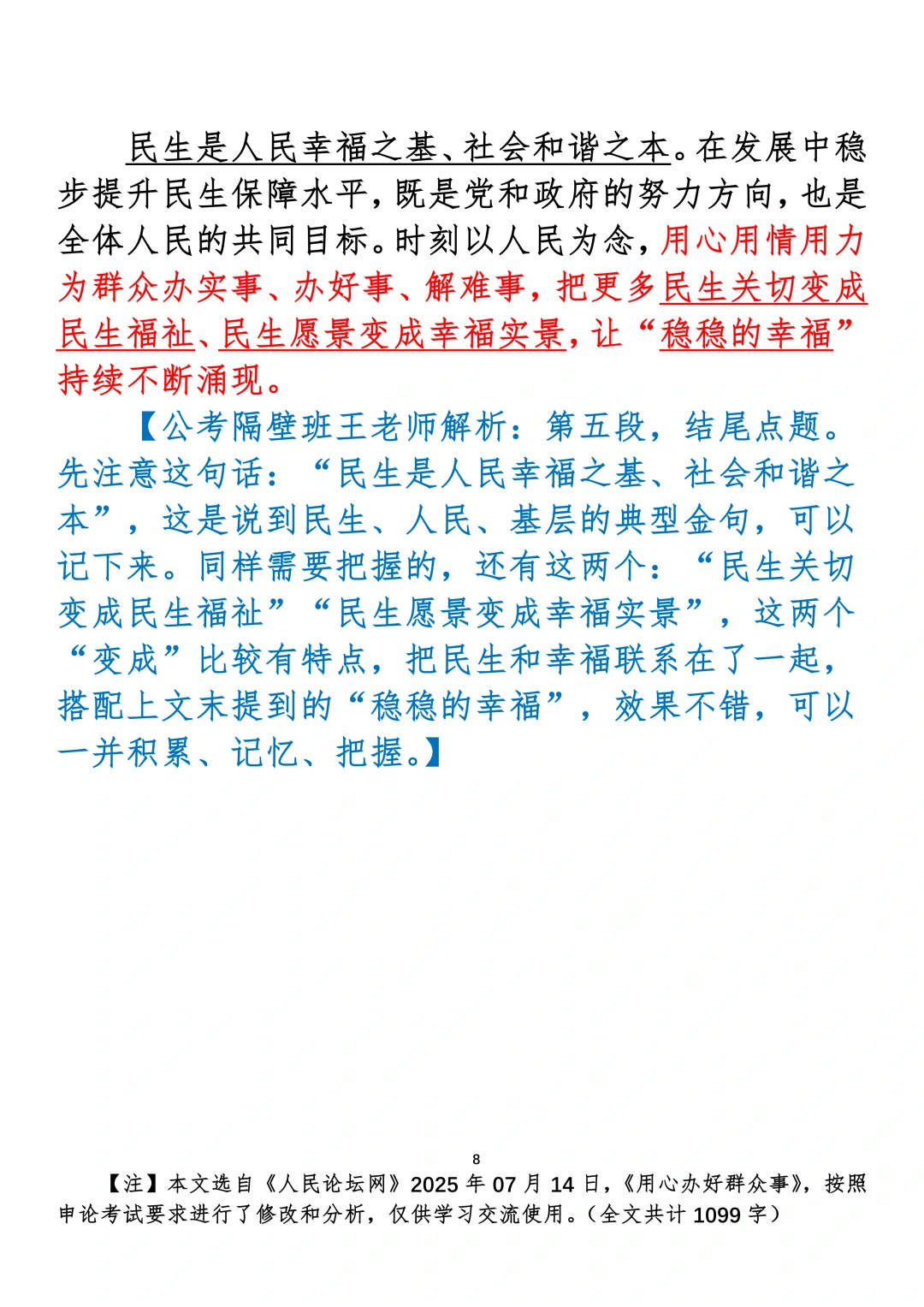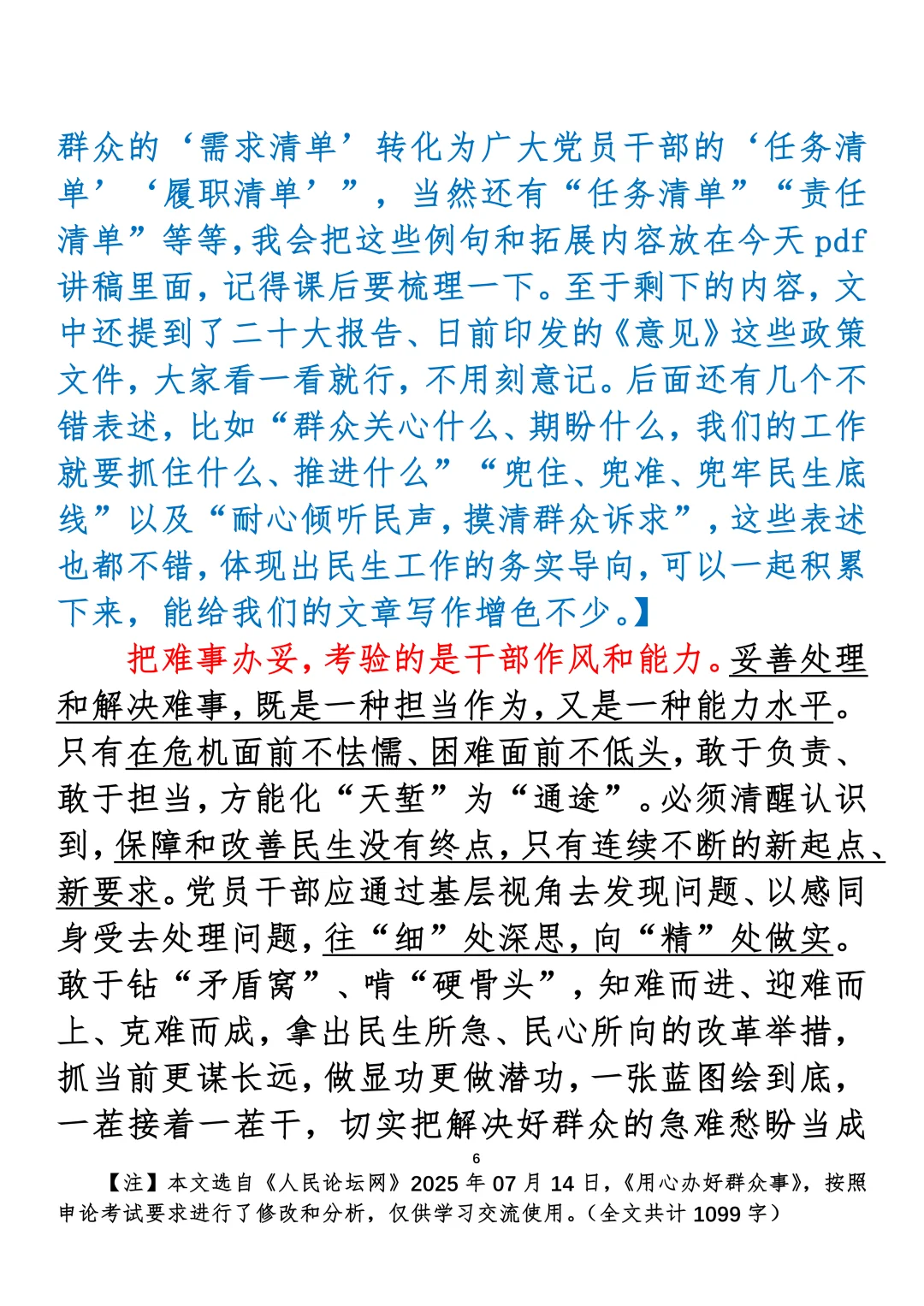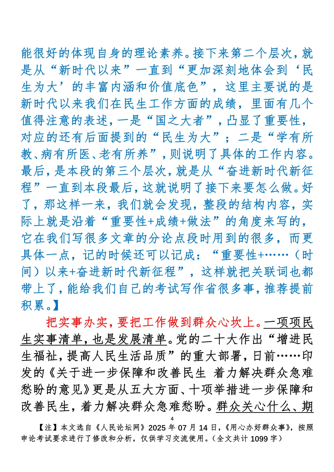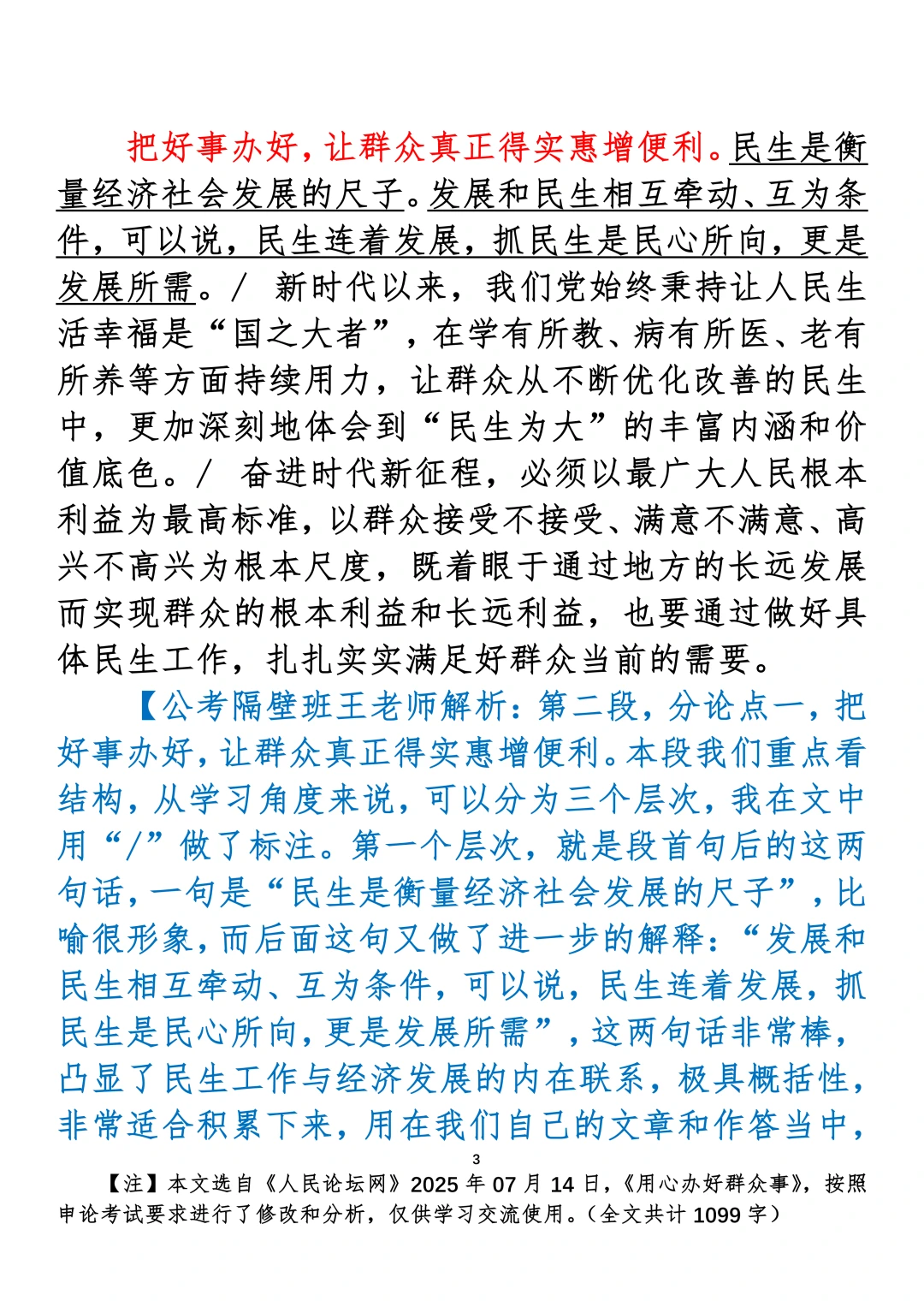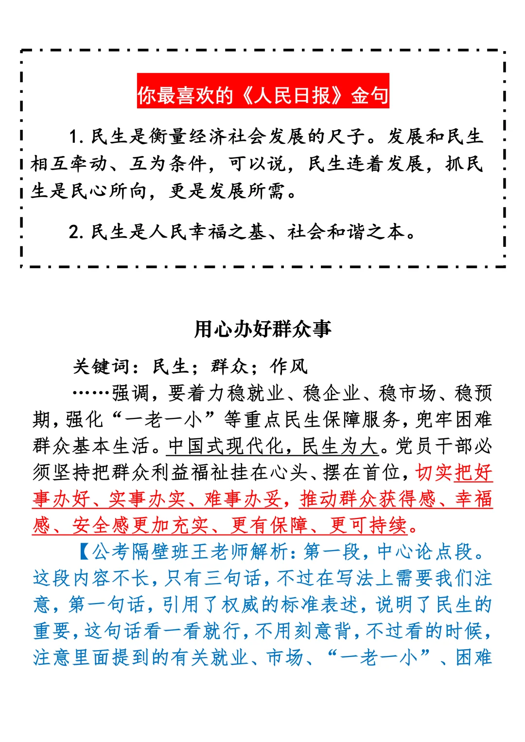 如何抄写:每日抄写文章发在“公考隔壁班王老师”账号,红色字是重点句和结构句,黑色字是正文,蓝色字是解析,大家抄写时不必抄蓝色字。建议先通读全文,做到心中有数再开始抄写,效果会更好。关于文章:抄写文章来源于人民日报,但每篇文章我都根据申论考试要求进行了修改:一是重写或修改开头、结尾;二是统一段首句句式结构;三是调整段落字数,使文章结构更均衡;四是简化复杂长难句,使之更具可模仿性。每篇文章无论修改多少,都是基于申论考试要求,毫无对人民日报文章品评之意。(此处致敬人民日报)