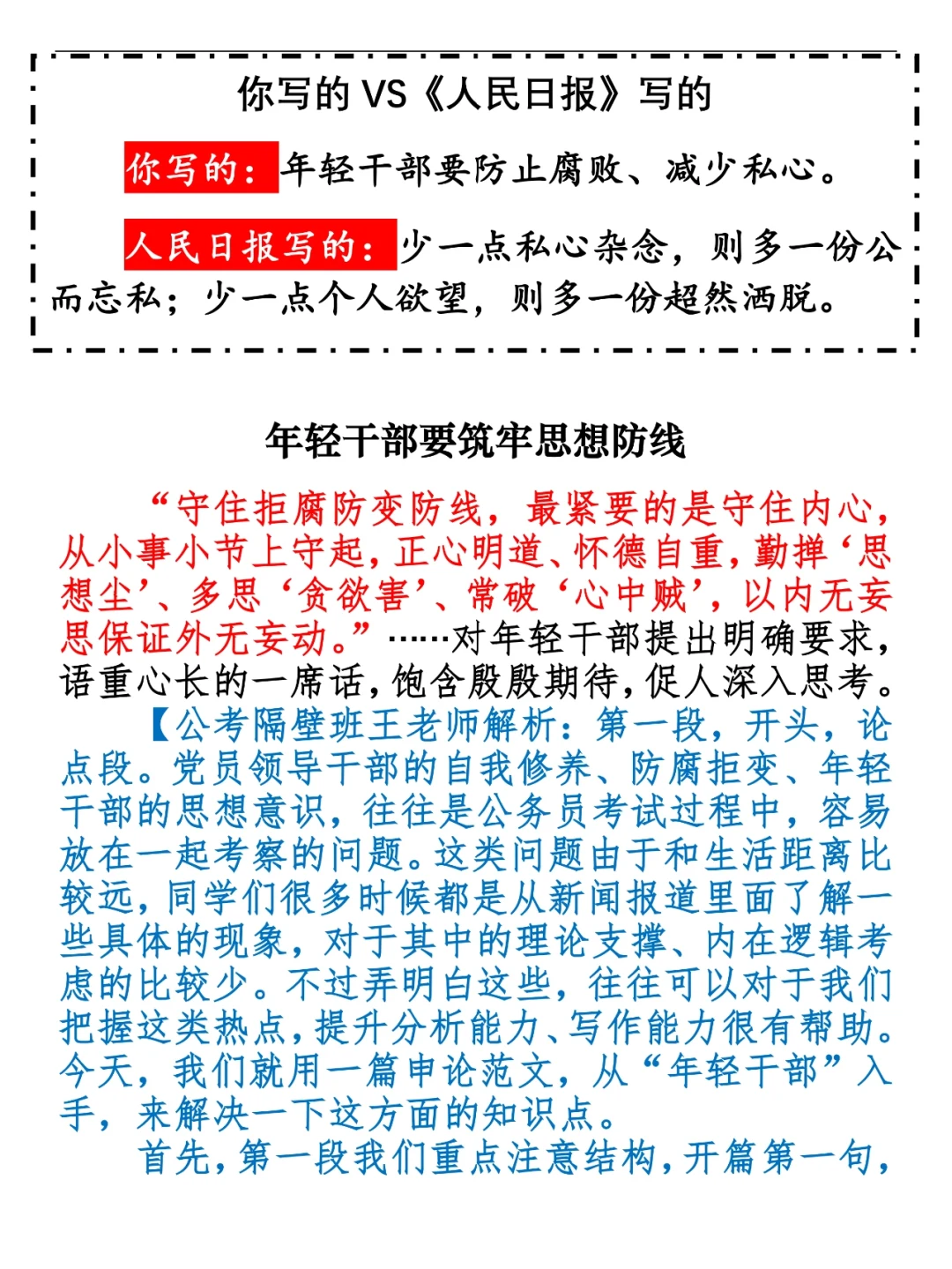 “破山中贼易,破心中贼难”,“心中贼”是每名年轻干部必须时刻警觉并努力驱赶的。 今天,我们就用一篇申论范文,一起破心中贼,为上岸做好准备。 ⭐️ ⭐️ ⭐️ ⭐️ ⭐️ 这里是公考隔壁班王老师独创的“每天半小时?申论80分”抄写团,欢迎加入我们!