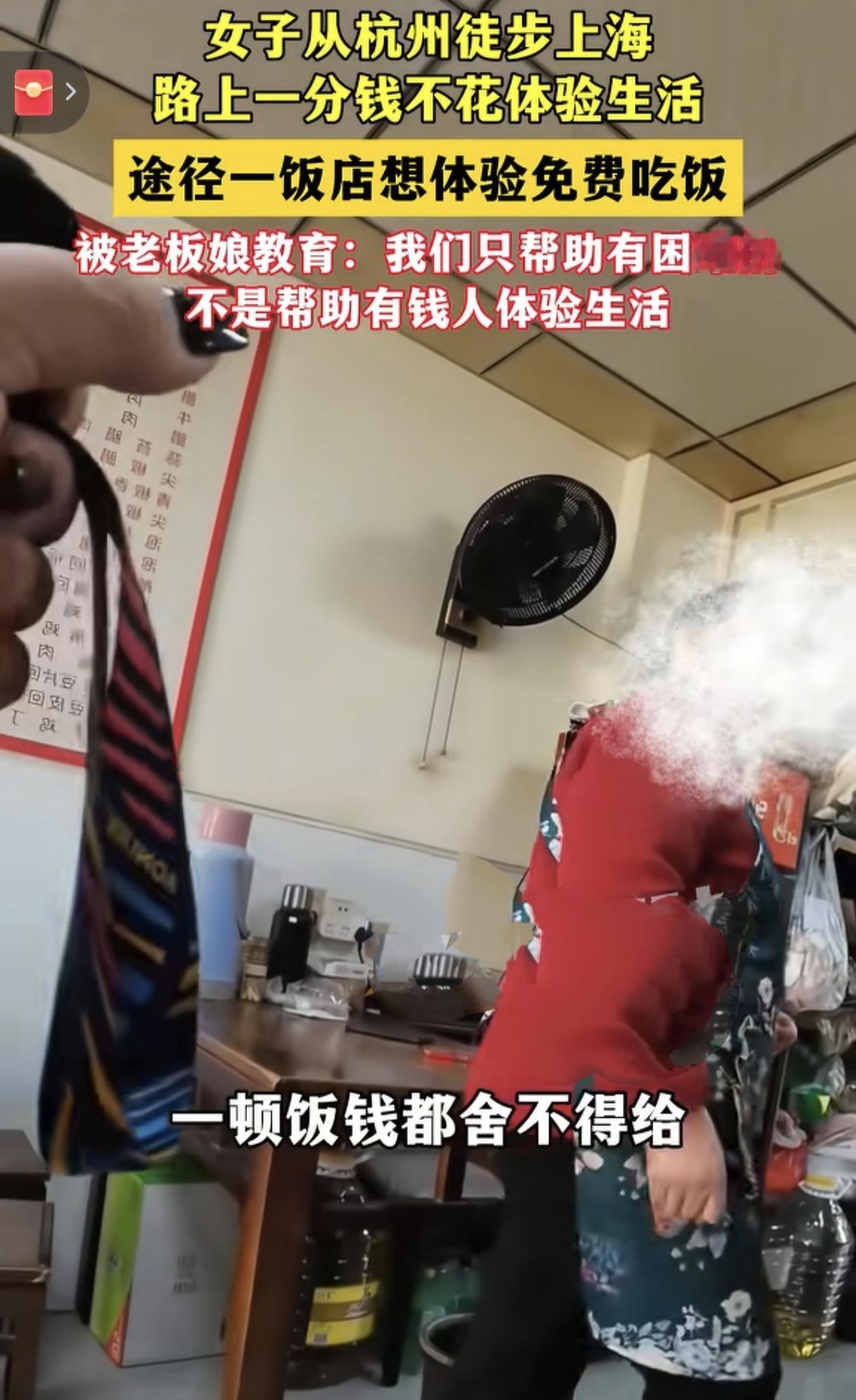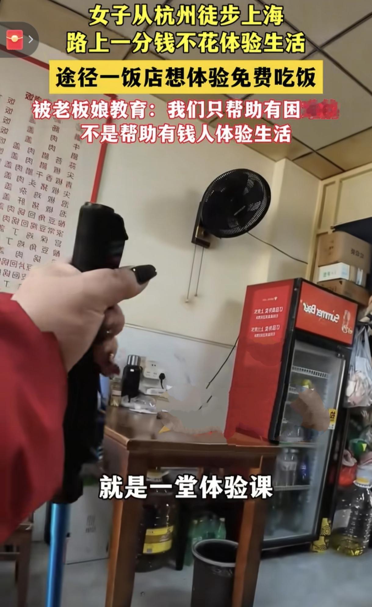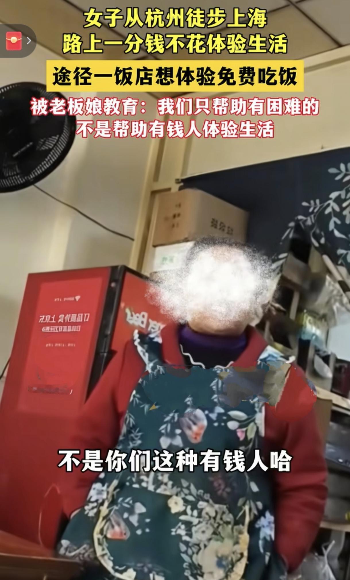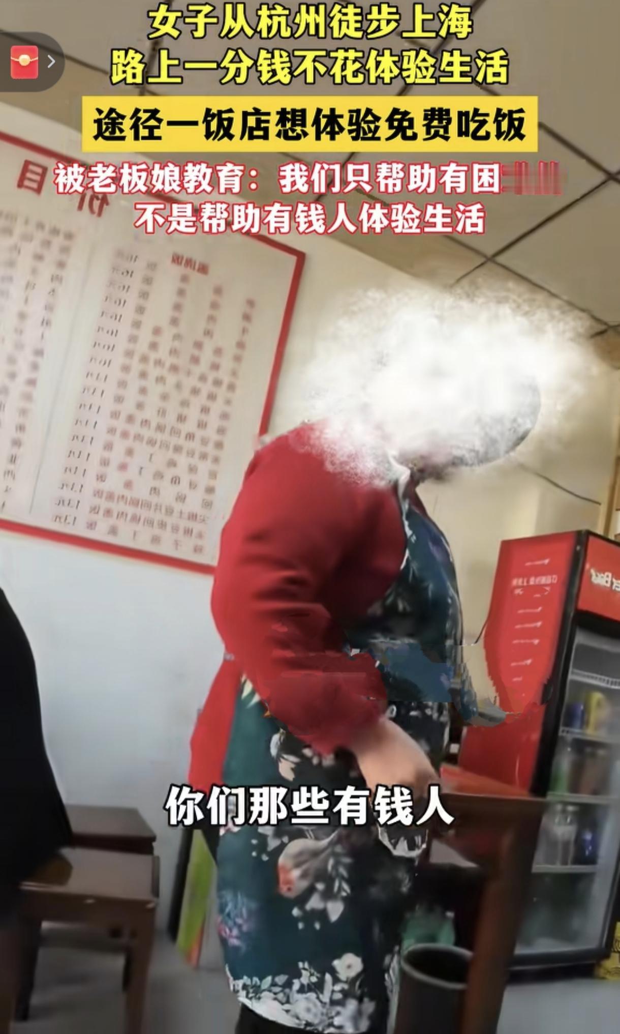 哈哈哈哈,痛快痛快!听口音,这位小店老板娘很像是咱们川渝一带的人! 不得不说,现在的有钱人,真的是花样百出,打着啥体验生活的借口,实际上就是白吃白喝,可人家小店,租门面、油盐酱醋和食材,还有各种各样的支出,哪一样又有免费的呢?而且,这位大姐也说了,是对真正困难的人免费,对有钱人,才不卖你那个账哦!这性情,非常适合川渝一带人的性格。 体验生活的人碰到了个软钉子,将经过发网上,开始肯定以为会有大量网友会去谴责这家店的小气,结果,殊不知,反而遭遇网友们一边倒的支持小店老板娘,虽然她赶紧删除了视频,可是,网友们却并没有就此罢休,各大媒体也纷纷推波助澜,一下成为了热榜话题! 唉!什么穷游、什么体验生活、真的是搞不懂也说不清楚这样的现象,有啥好处!