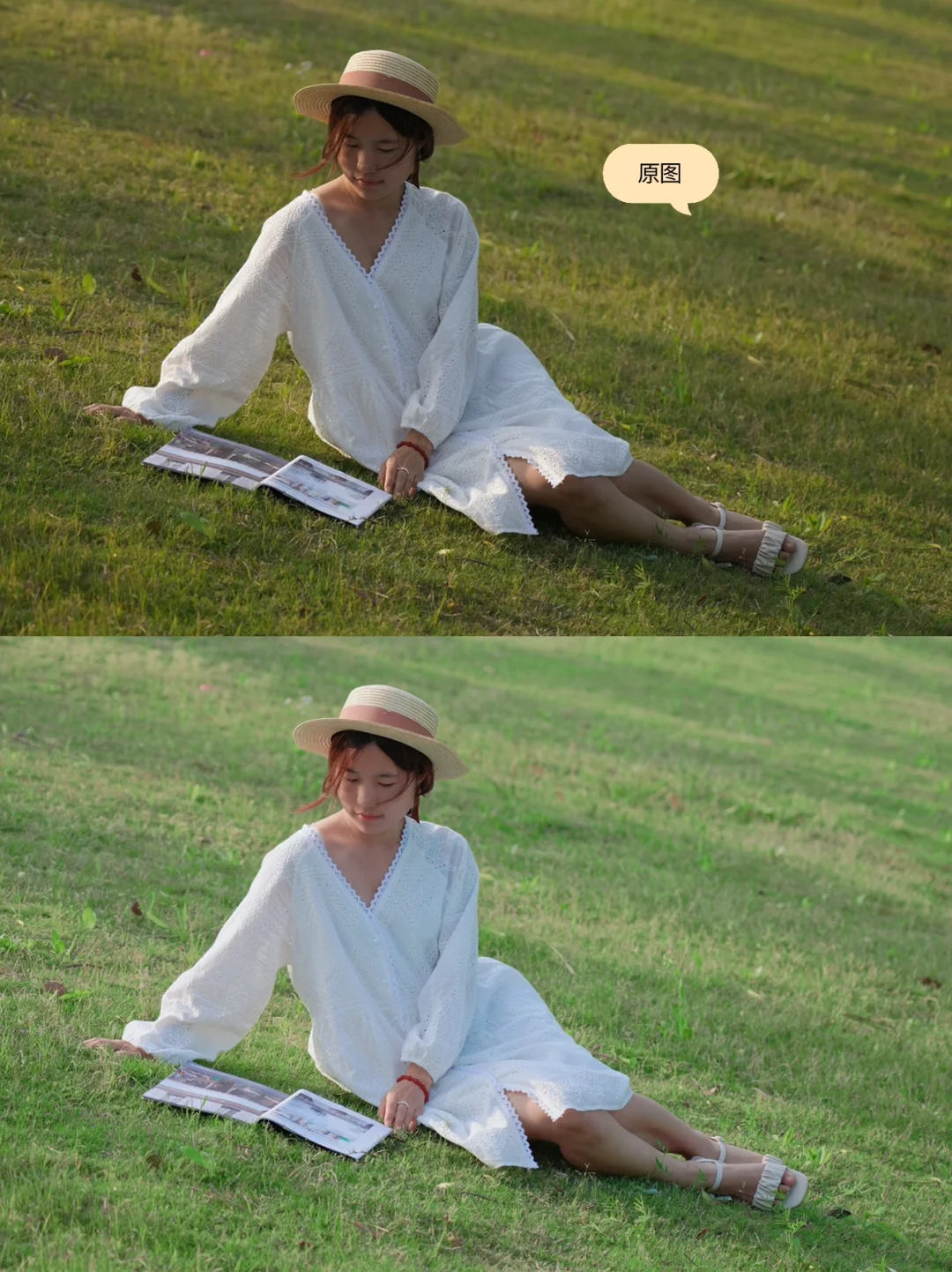 夏天到了,又可以重温电影《小森林》了 太喜欢小森林的绿色色调了,充满了治愈 没有什么丧和焦虑是一部小森林治愈不了的 如果有,那就两部吧:夏秋篇和冬春篇~ 初夏应该是奶绿色的,自然、清爽且生机 原片比较暗(图4⃣️),先提高亮度,降低饱和度 增加色温,再调节HSL的绿色、黄色即可 拍摄地点:滨江白马湖公园,后面有片大草坪 小白裙和绿草坪,真的是绝配了! 拍摄时间:4·28 设备:SONY a7r3a